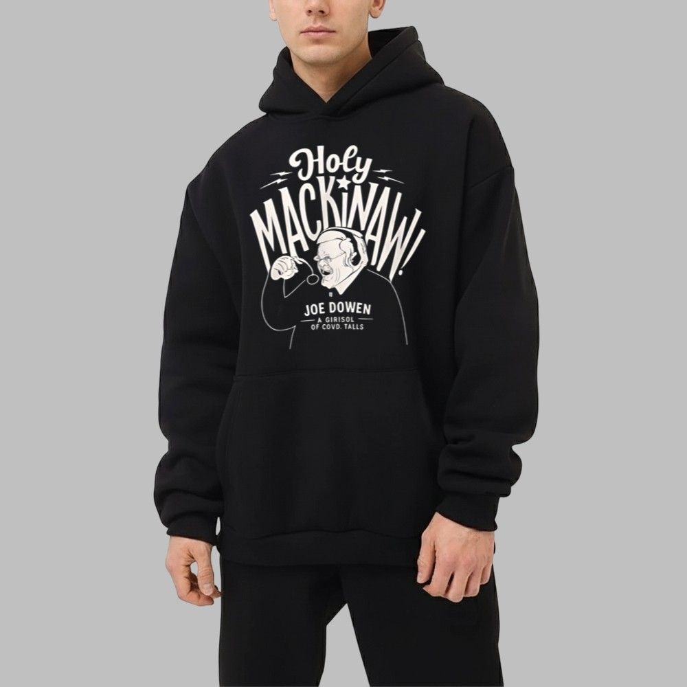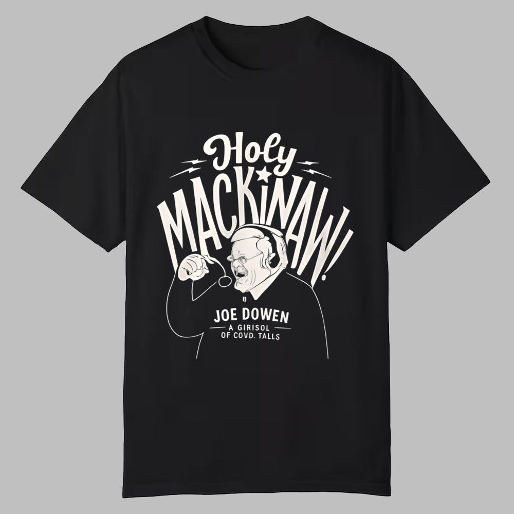 Step back in time and celebrate the voice that has narrated over 3,000 games with our 1982 Joe Bowen Holy Mackinaw Shirt. This meticulously designed tee captures the raw energy and personality of Joe “Bonsie” Bowen in his element—calling the game with the passion that has made him a broadcast legend. The striking, retro-style illustration features Bowen mid-call, headset on, with his signature catchphrase “Holy Mackinaw!” emblazoned in bold, dynamic lettering.