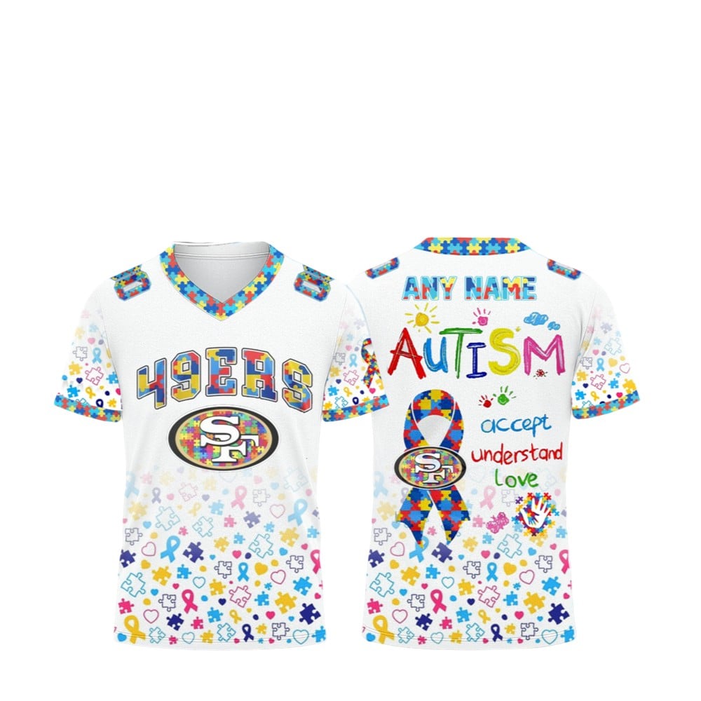 This jersey is designed for the passionate 49ers fan, the dedicated family member, the proud advocate, and anyone who believes in the power of sports to unite and uplift. It’s the perfect gift for loved ones connected to the autism community or for any member of the Faithful who wants to showcase their support for neurodiversity. By choosing this jersey, you are not just buying fan gear; you are starting conversations, raising awareness, and visually representing a community built on acceptance, understanding, and love.