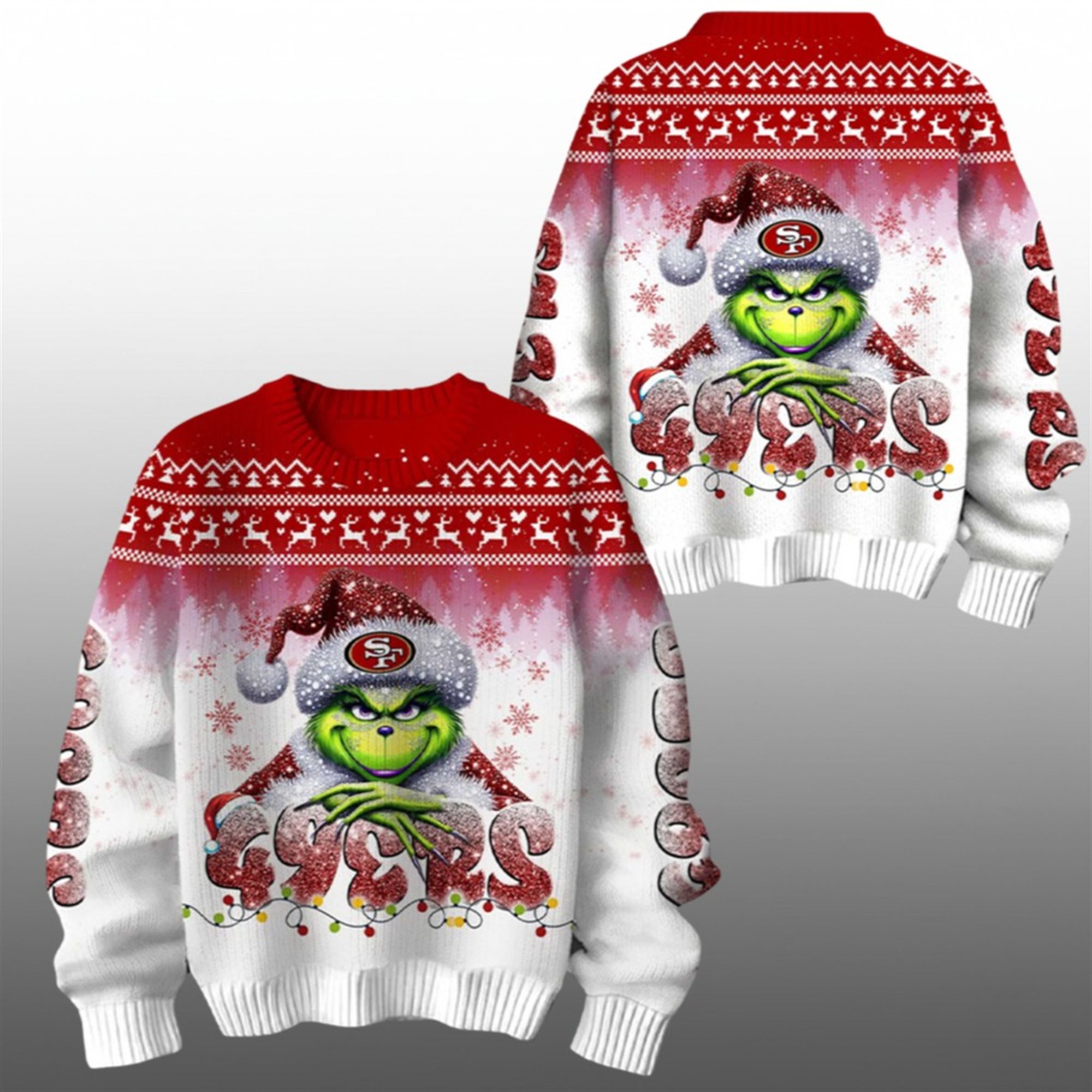 2025 49ers Grnch Season Christmas Ugly Sweater | Where Whoville Meets the Bay