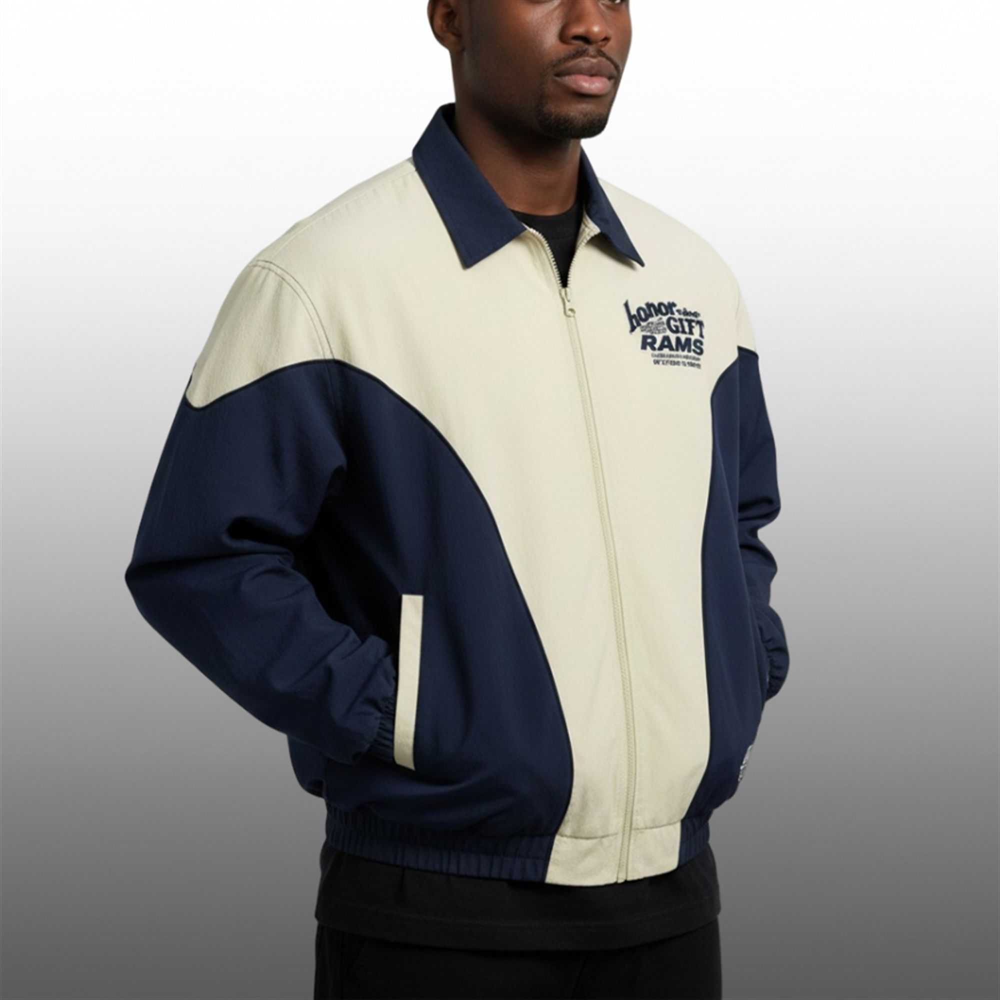 Step into the intersection of dominance and luxury streetwear with the 2025 Aaron Donald Los Angeles Rams Football Jacket. As captured in viral images of Rams legend Aaron Donald, this jacket exudes a quiet confidence. The design features a striking cream and navy blue color-block aesthetic that pays homage to the Rams’ classic heritage colors while maintaining a neutral, fashion-forward palette suitable for everyday wear. The chest proudly displays the collaborative “Honor The Gift / Rams” script logo, symbolizing the unity of two LA icons: the gridiron greatness of the Rams.