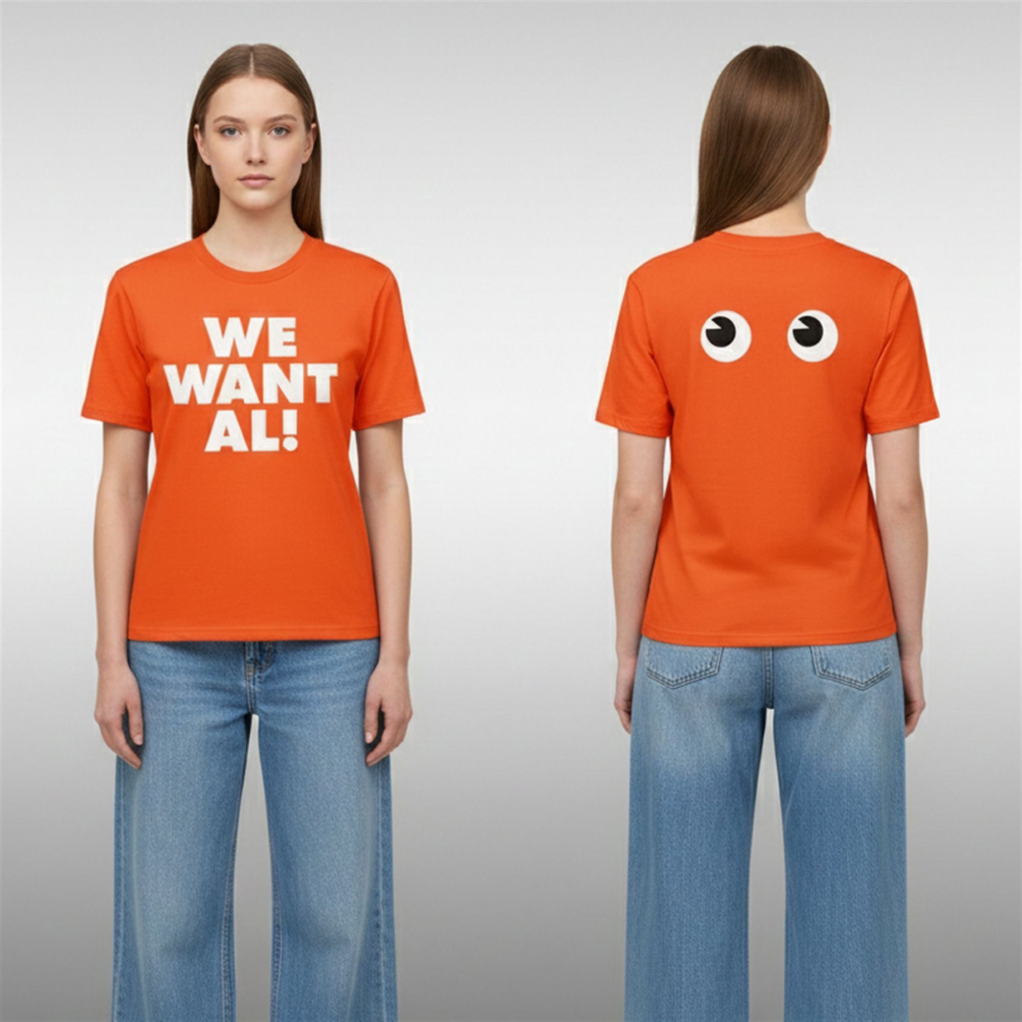 What sets this shirt apart from standard team merchandise is its playful, 360-degree design. While the front makes a bold statement with the “WE WANT AL!” typography, the back of the shirt features two large, cartoonish eyes—the signature look of the Al Tuna mascot. This “eyes on the back” design element adds a layer of humor and distinctiveness that appeals to fans of all ages, from kids attending their first game to seasoned season-ticket holders. It captures the whimsical spirit of the Curve franchise and ensures the wearer makes an impression coming and going.