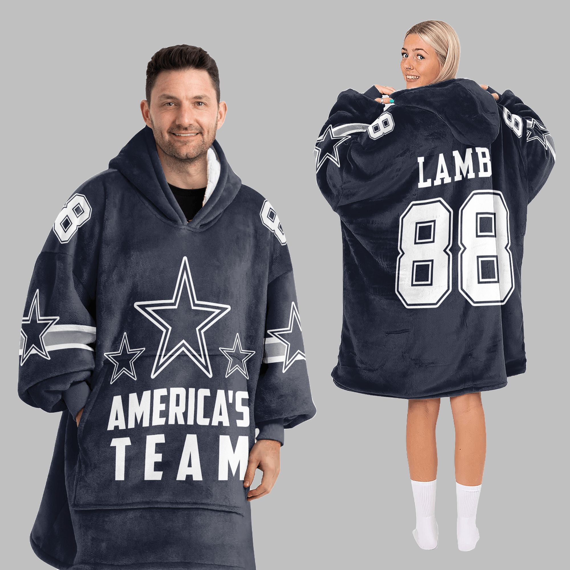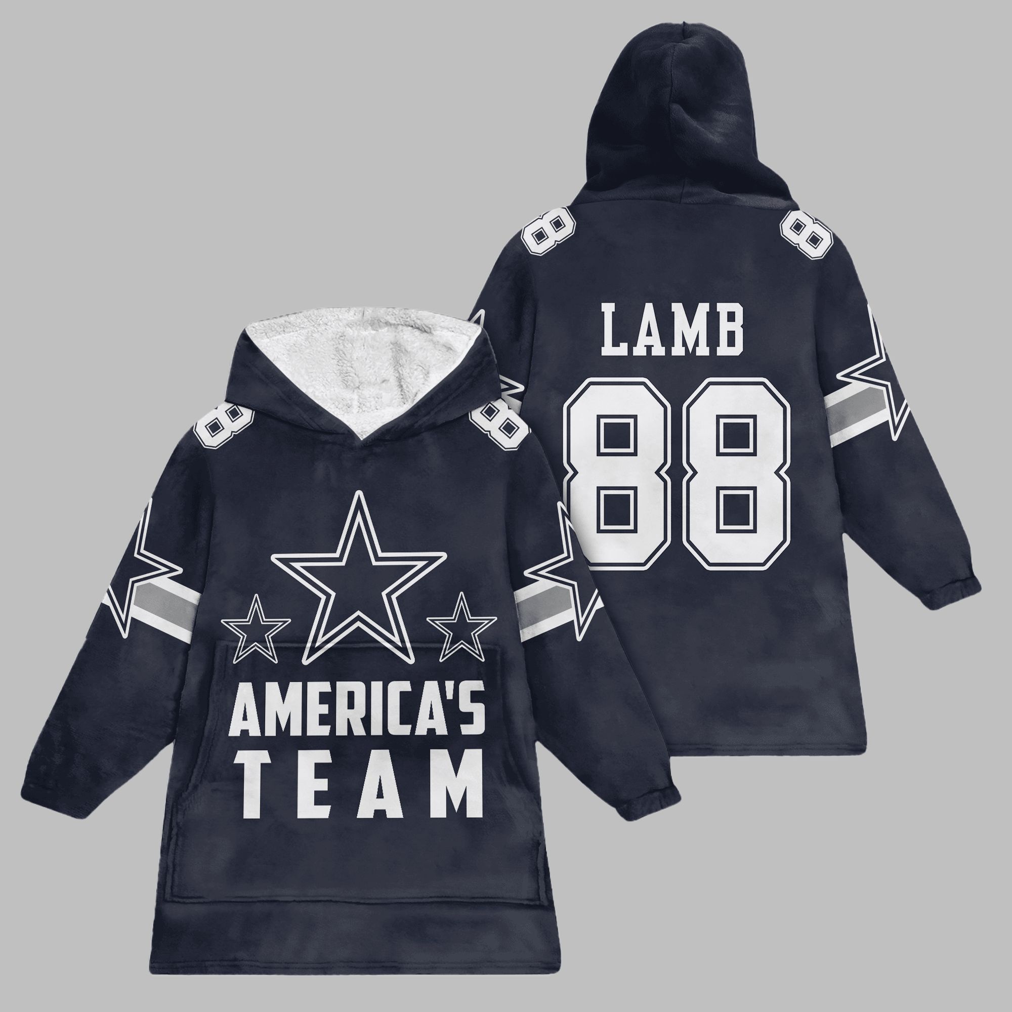 Wrap yourself in the pride of America’s Team and the comfort you deserve. Order your CeeDee Lamb #88 Dallas Cowboys Blanket Hoodie today and show the world how a true fan celebrates.