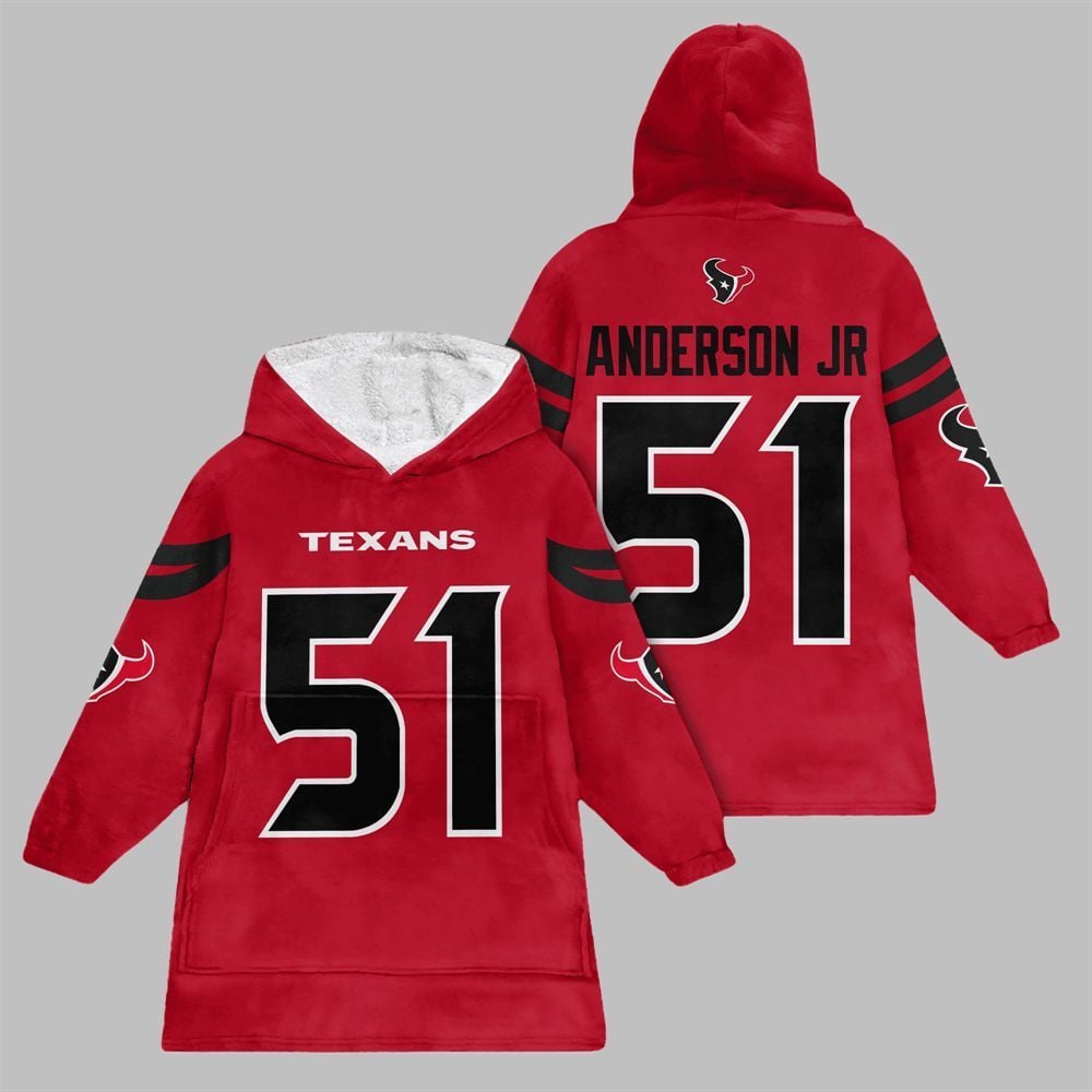 2025 Anderson Jr 51 Texans Football Blanket Hoodie | Show Your Support