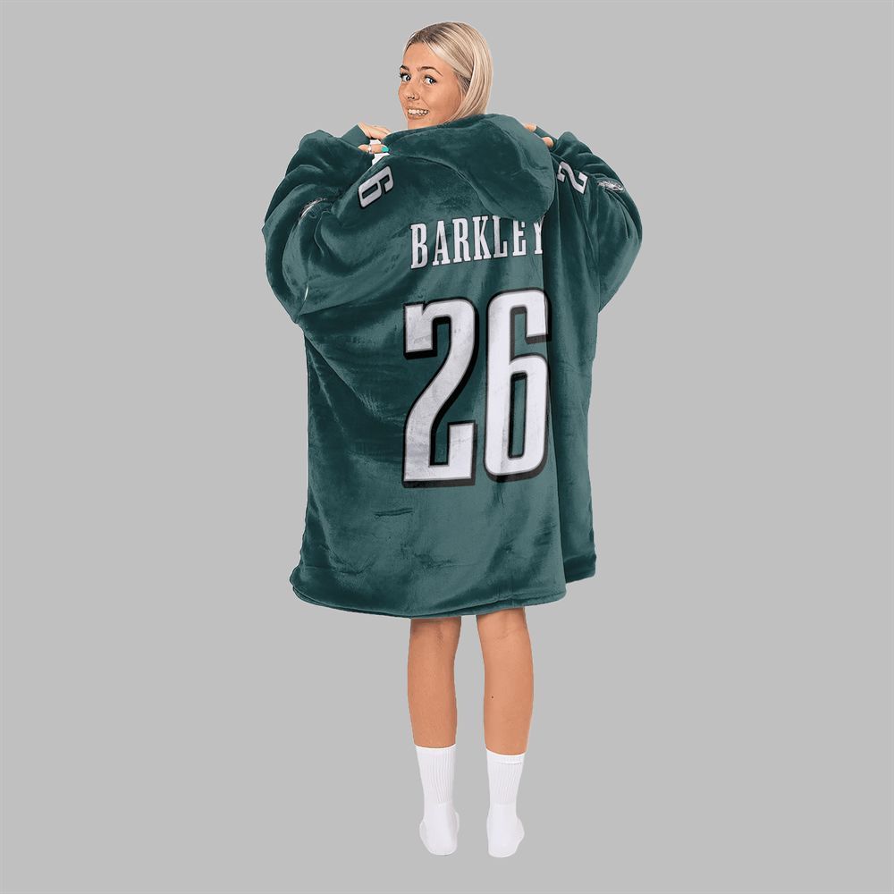 The 2025 season is here, and the Philadelphia Eagles are ready to fly high with star running back and team captain, Saquon Barkley. Elevate your fan experience with the 2025 Barkley 9 Captain Eagles Football Blanket Hoodie. This blanket hoodie is engineered for the die-hard fan who demands both style and comfort. It perfectly captures the on-field look of Barkley’s official #26 jersey, complete with the prestigious gold “C” captain’s patch, while delivering the warmth and softness of a luxurious oversized blanket. It’s the definitive way to show your allegiance, whether you’re cheering from the stands, your living room, or your favorite sports bar.