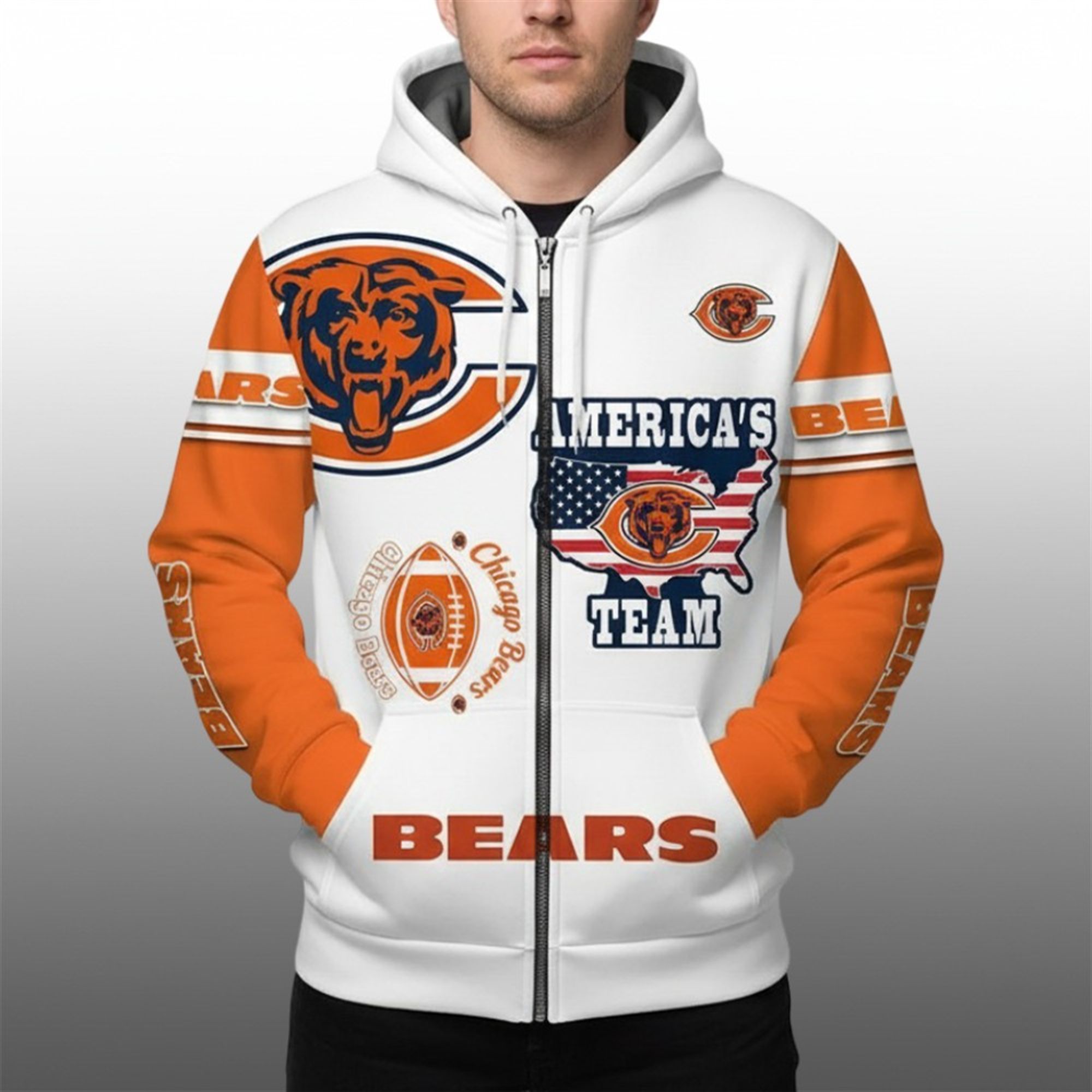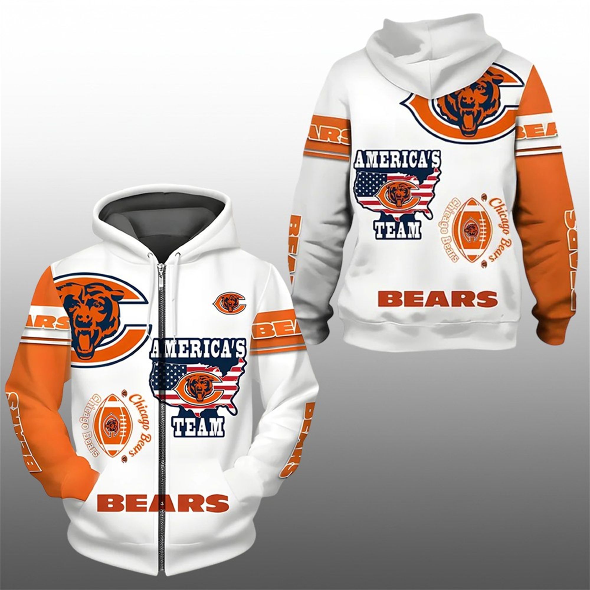 Forget blending in with the crowd. We’re offering a piece of fan apparel that’s as bold and relentless as the Bears’ defensive line: the 2025 Bears America’s Team Zip Hoodie. This isn’t just another sweatshirt; it’s a vibrant, patriotic, and unapologetic statement of allegiance to your team and your country.