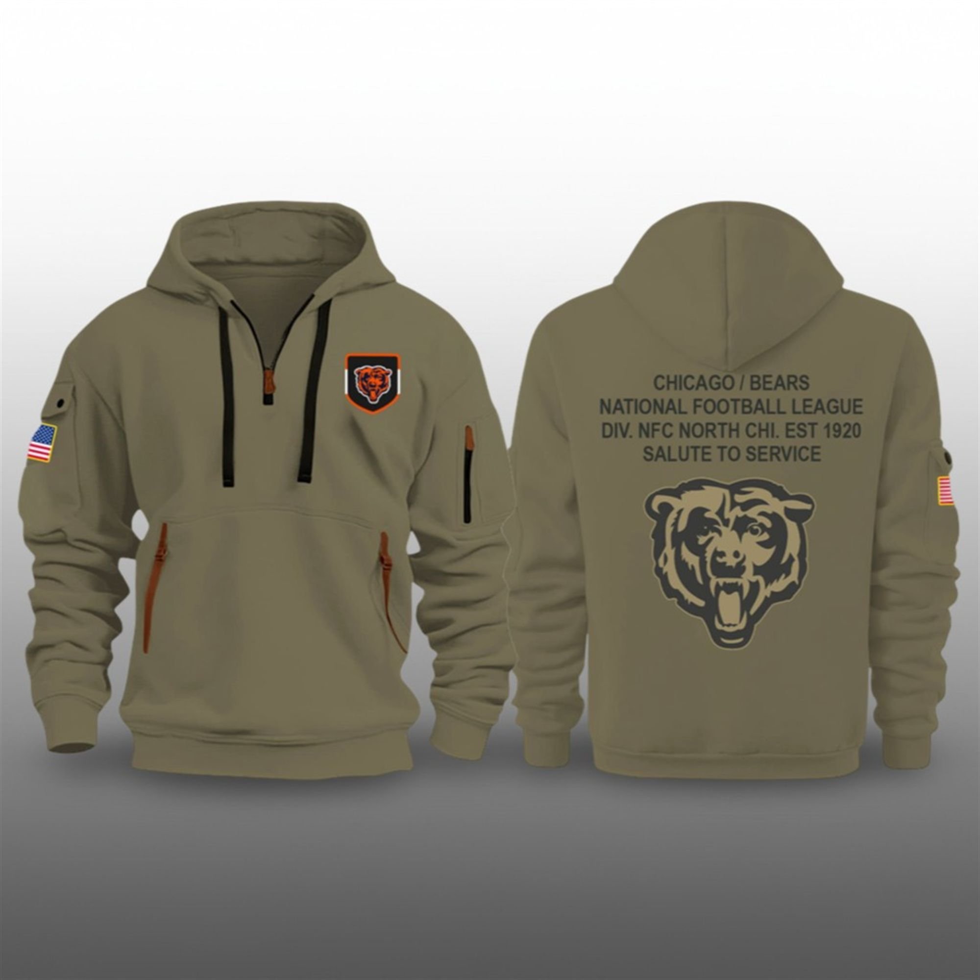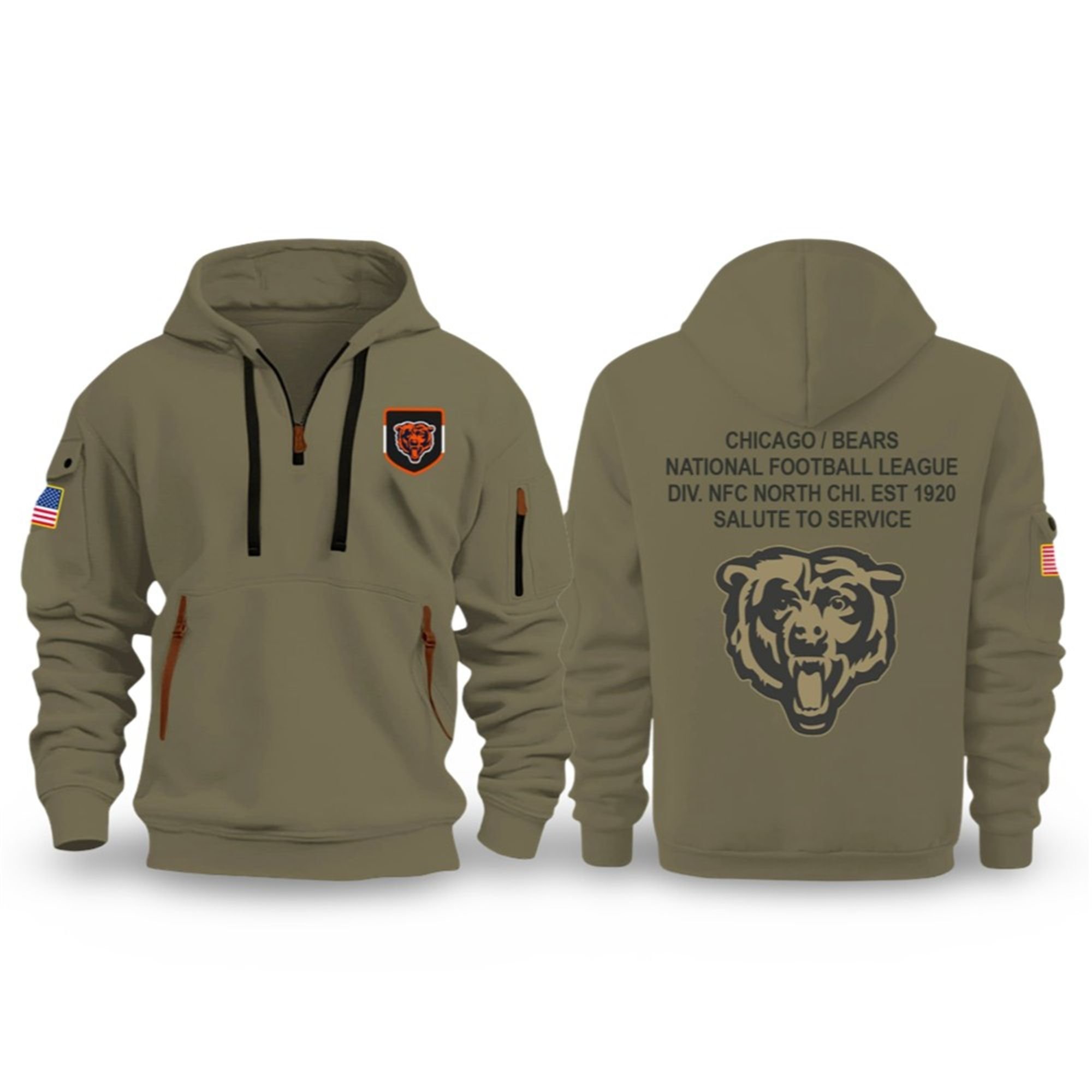 2025 Chicago Bears Salute To Service Quarter Zip Hoodie | Honor, Legacy, and FootballÂ