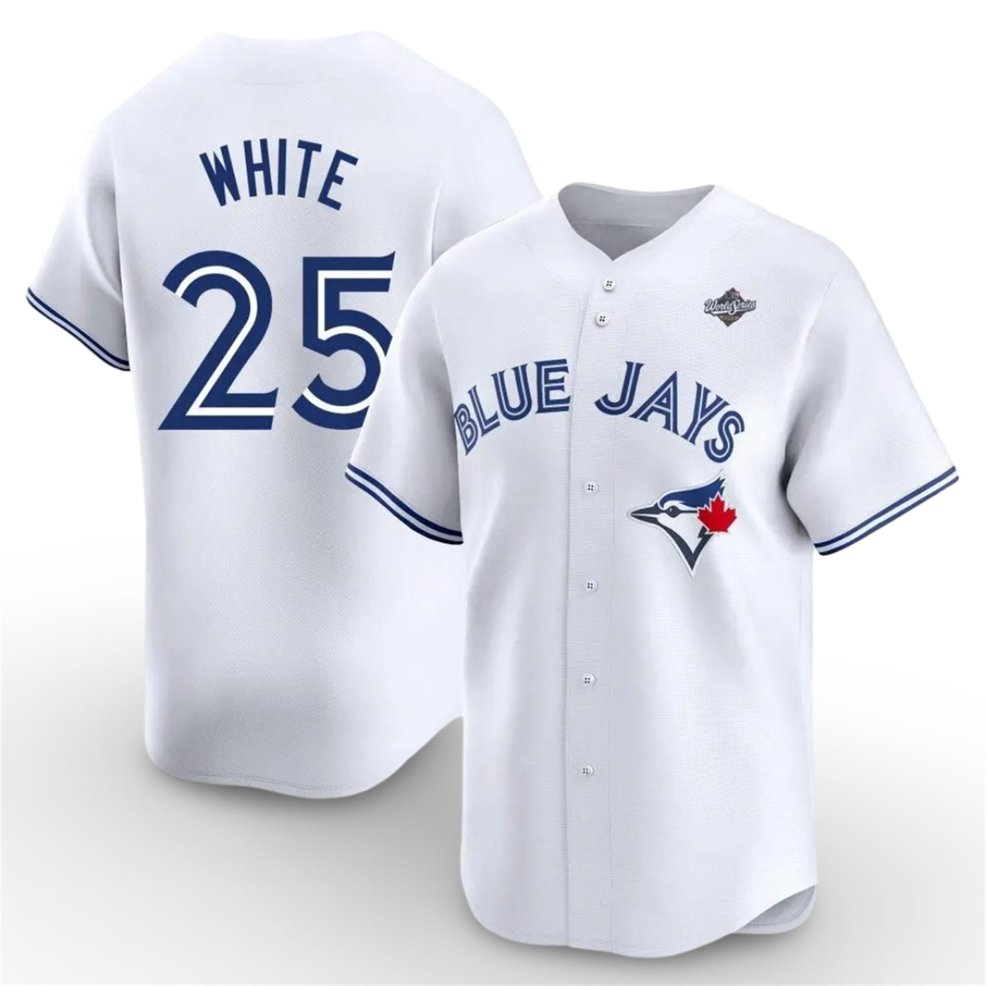 This jersey proudly features “WHITE” and his iconic number “25” on the back, crafted in the classic Blue Jays script. The front is adorned with the timeless team logo and, most importantly, the 2025 World Series patch. It’s a commemorative piece designed for the fan who understands that this 2025 run was built on the foundation laid by legends like Devon White.