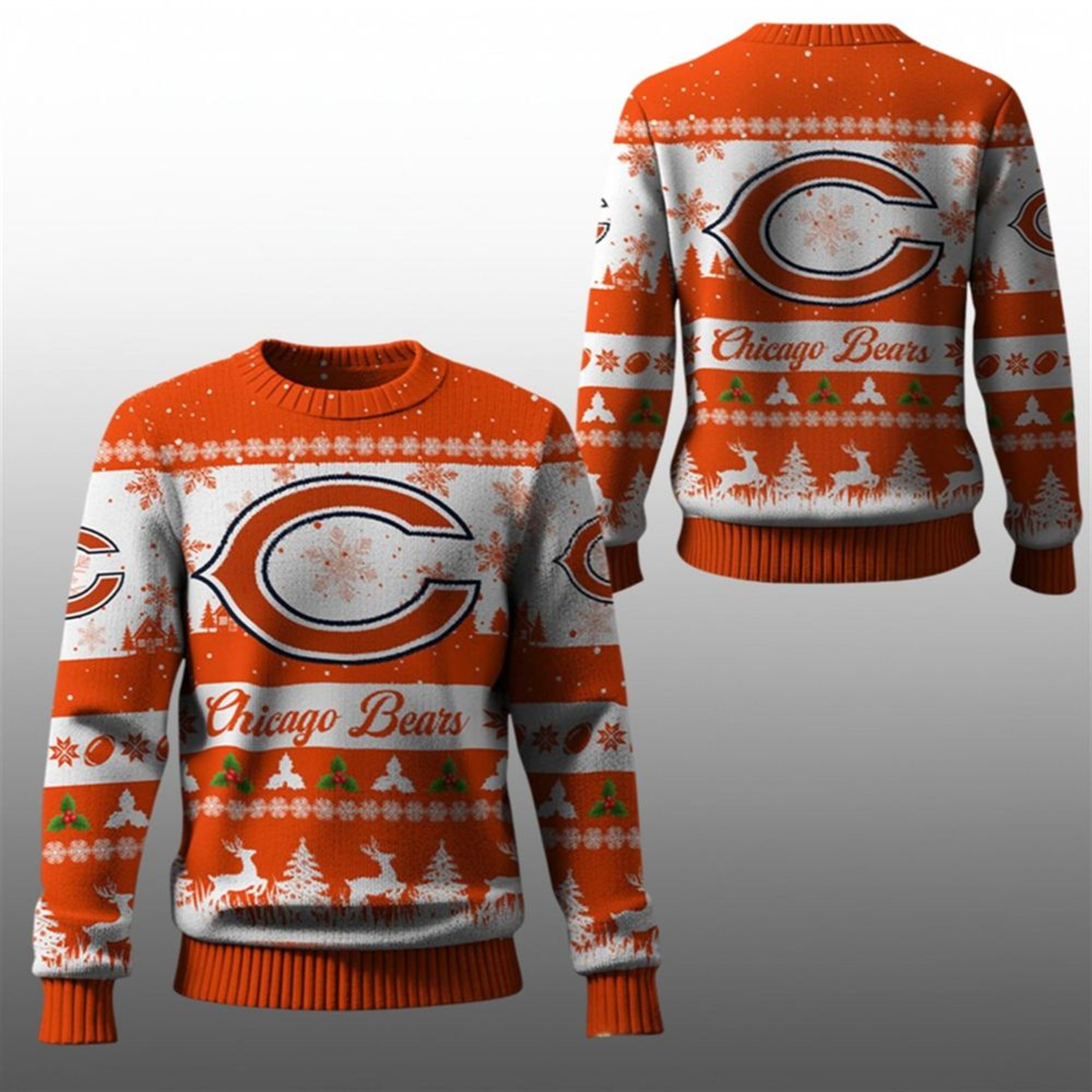 Chicago Bears Ugly Christmas Sweater 2025 | Festive Orange Reindeer & Tree