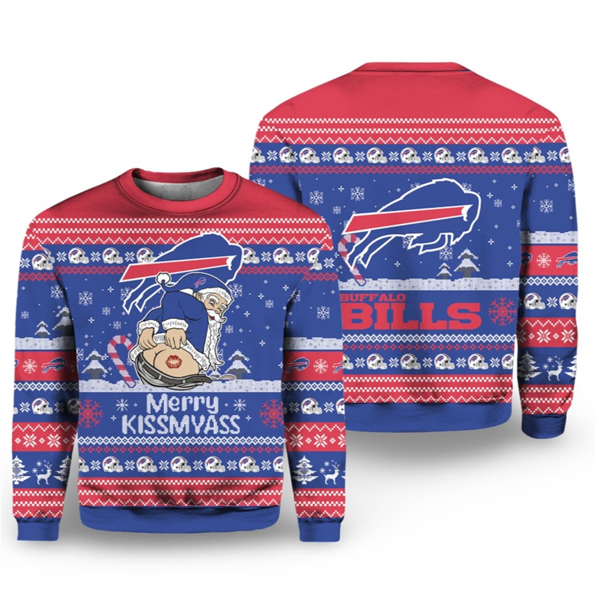 2025 Buffalo Bills Merry Kissmyass Santa Claus Ugly Christmas Sweater | The Ultimate Holiday Statement