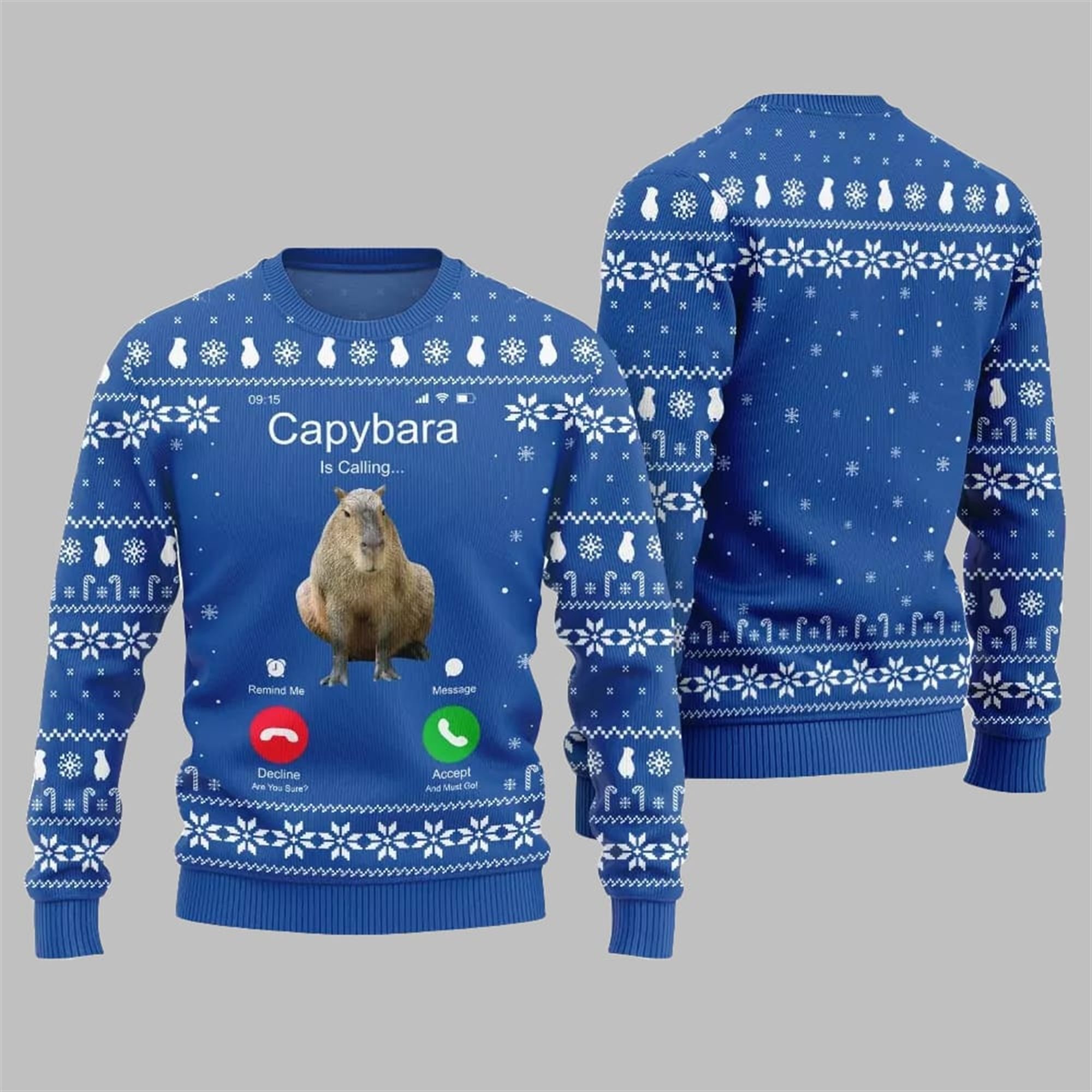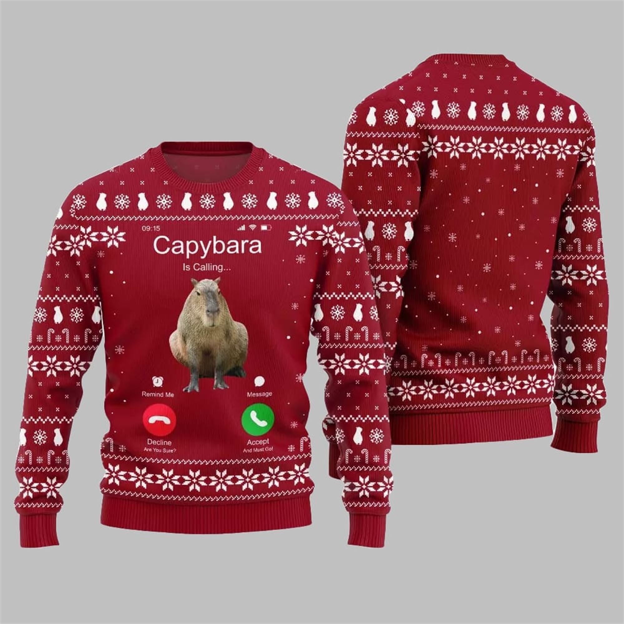 2025 Christmas Calling Capybara Ugly Sweater | Funny Viral Meme Holiday