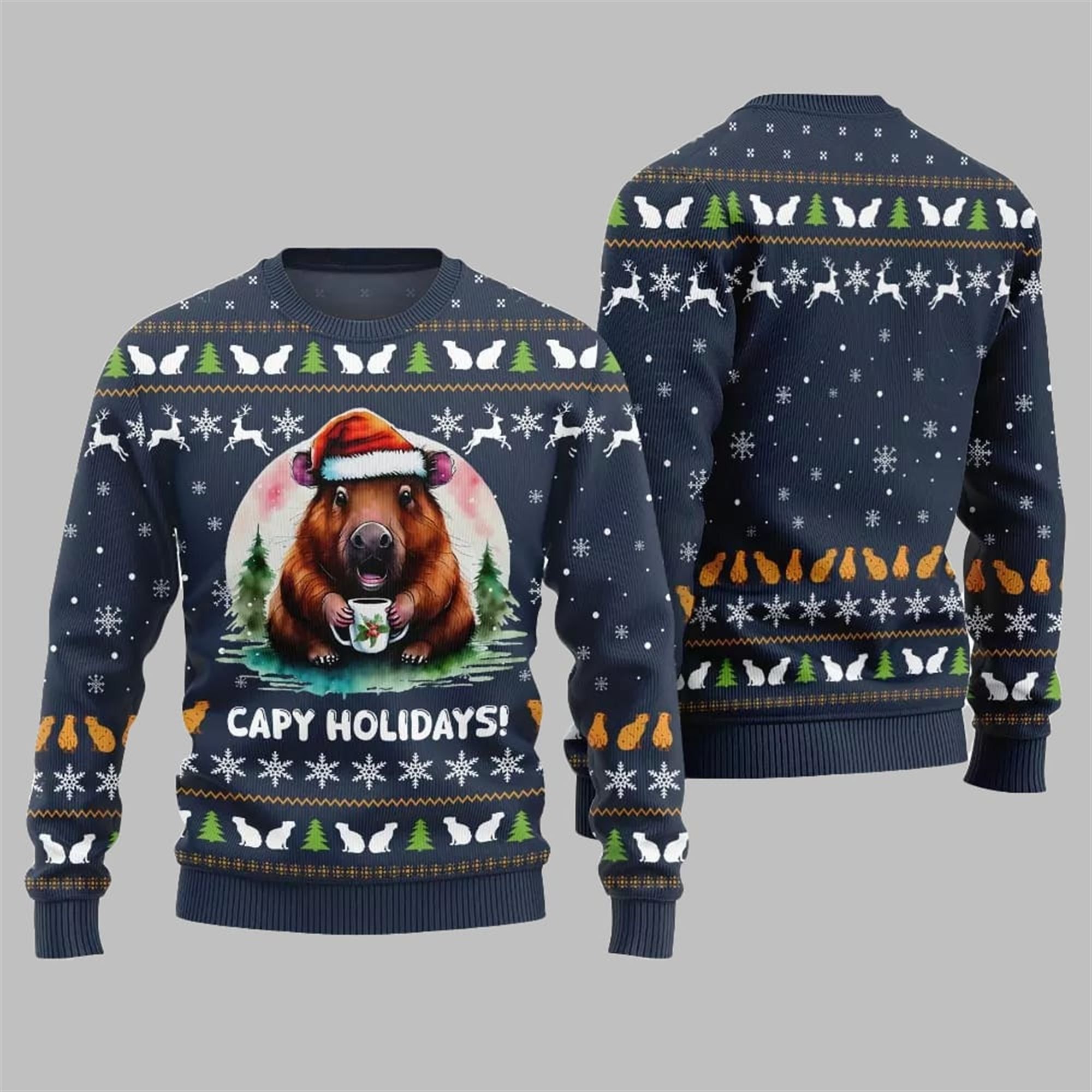 Get ready to pull up to your holiday gatherings in the most unbothered and festive way possible. Our 2025 Christmas Capy Holidays Ugly Sweater is the perfect blend of cozy comfort and viral charm.