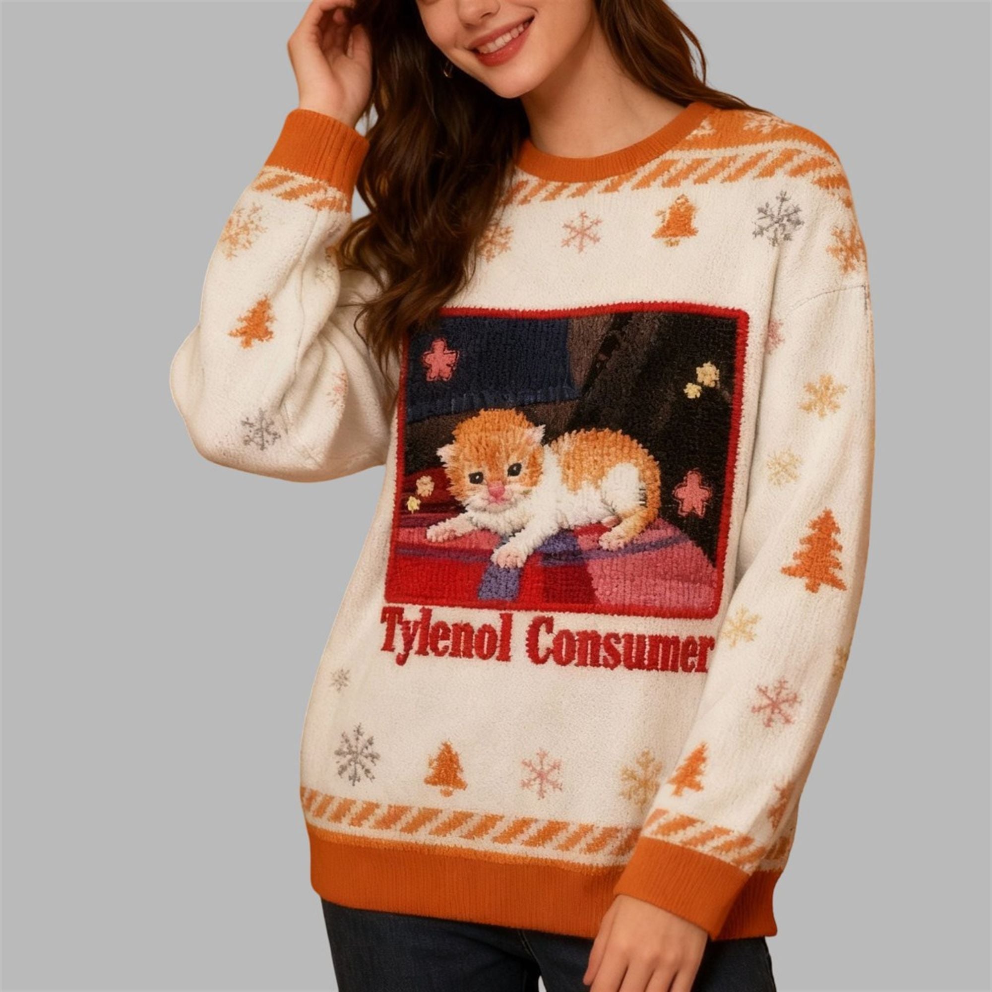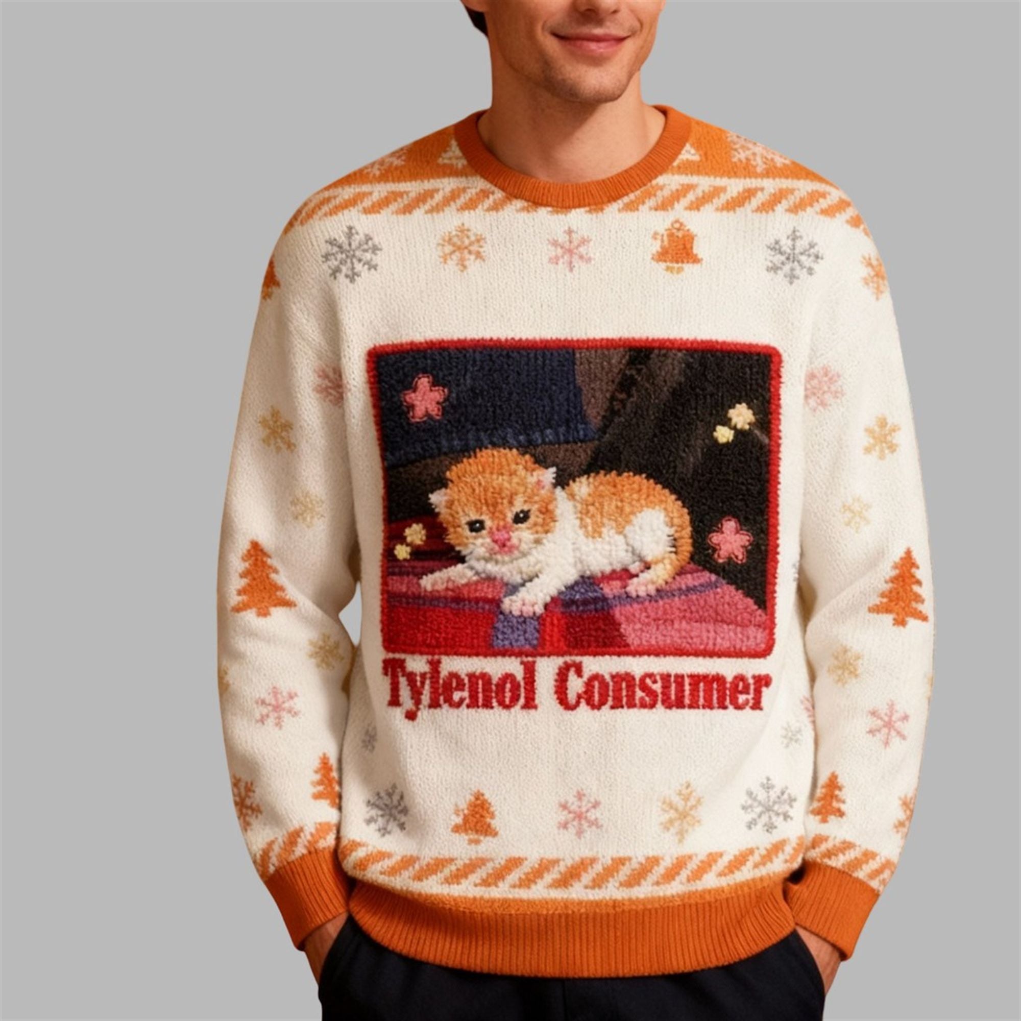 Cat Tylenol Consumer Ugly Sweater | Viral Meme Holiday Apparel