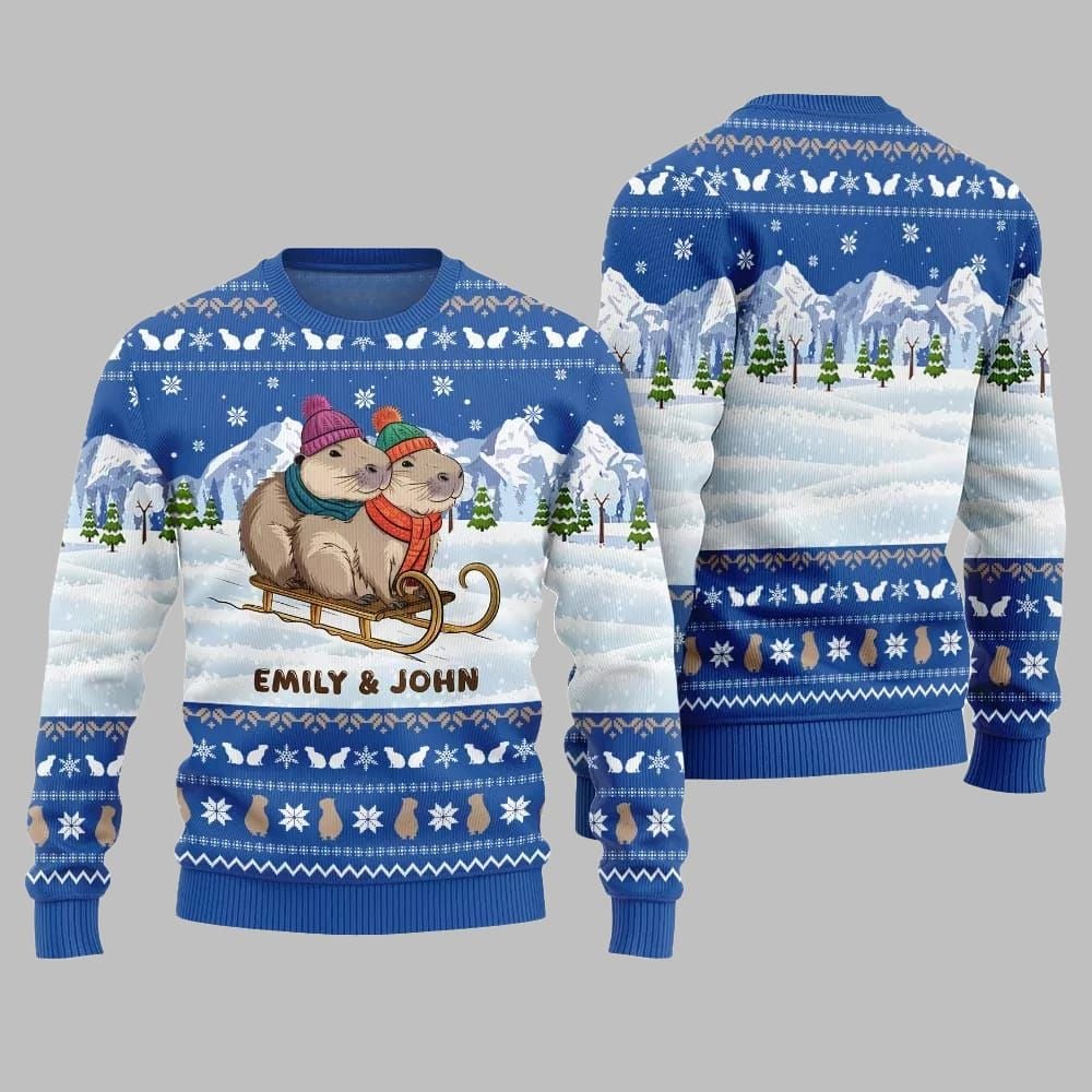 2025 Christmas Couple Capybaras Ugly Christmas Sweater – Unleash Ultimate Holiday Cheer