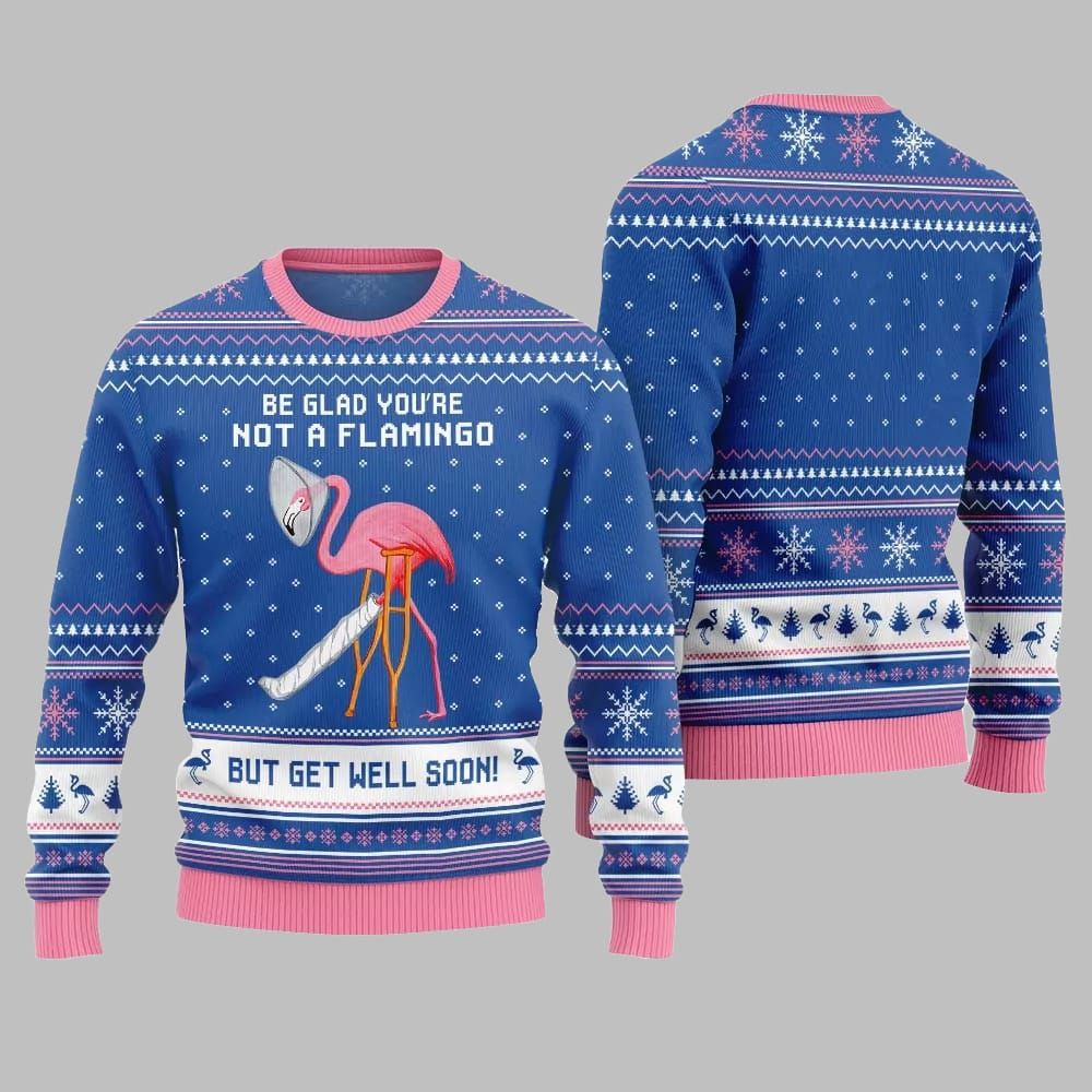 2025 Christmas Crazy Flamingo Oops Broken Leg Ugly Christmas Sweater – Sleigh the Competition This Holiday
