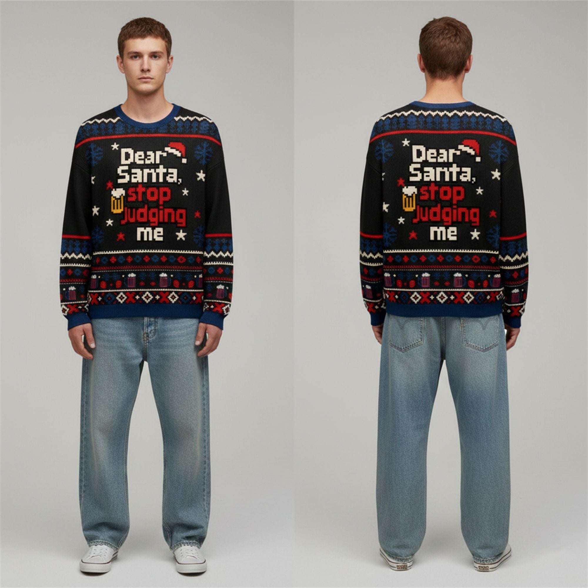 2025 Christmas Dear Santa Stop Judging Me Ugly Sweater | Retro Charm Meets Holiday Humor