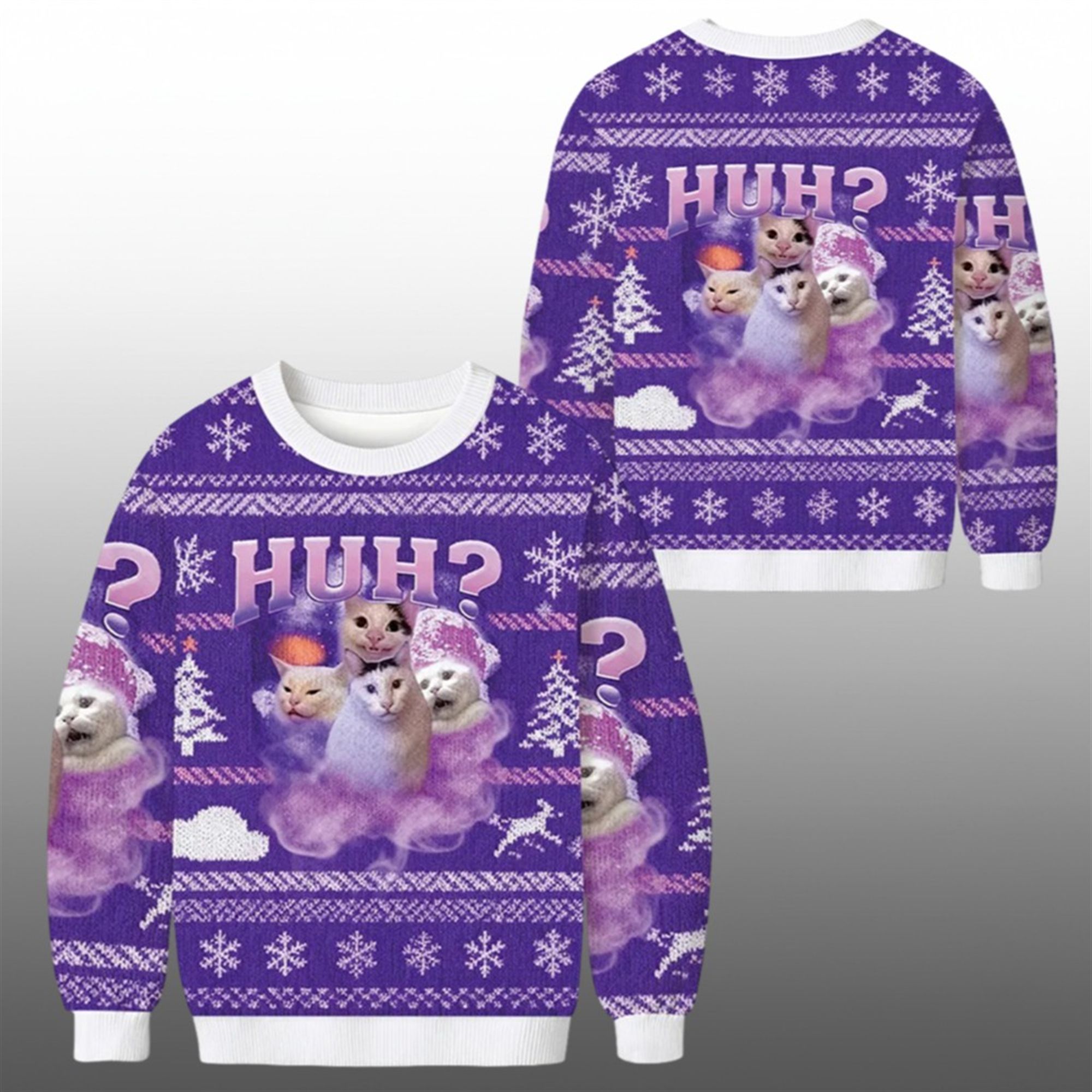 2025 Christmas Funny Meme Huh Cat Ugly Sweater | The Meme Gift for Holiday