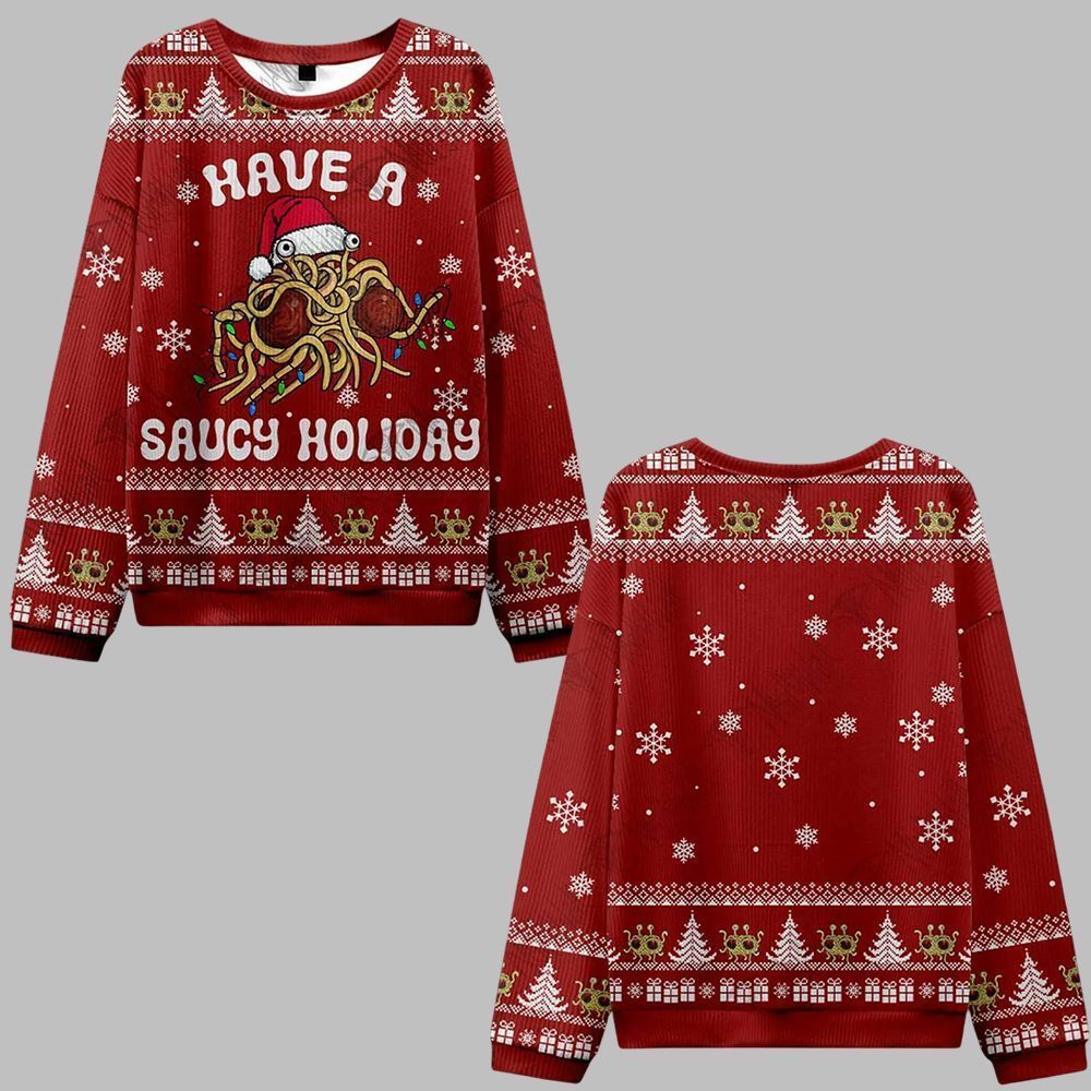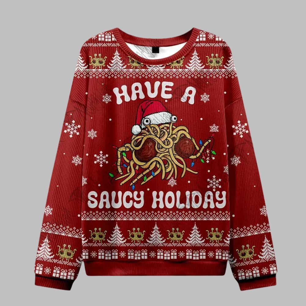 2025 Christmas Have a Saucy Holiday Ugly Christmas Sweater | Flying Spaghetti Monster