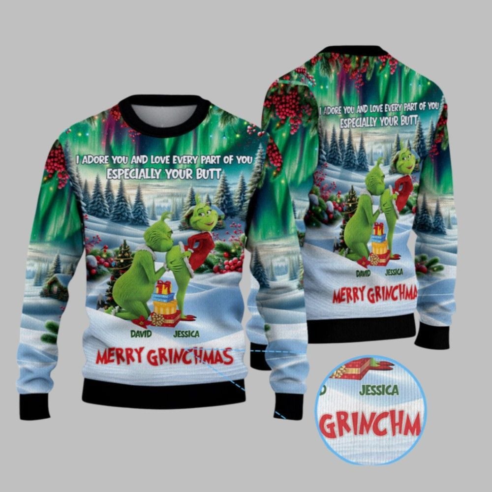 This holiday season, steal Christmas in style and celebrate your love with a wickedly funny twist. Introducing the 2025 Christmas I Adore You And Love Every Part Of You Especially Your Butt Merry Grnchmas Ugly Sweater. This isn’t your grandmother’s knitted sweater; it’s a bold, modern, and hilariously romantic garment designed to make you and your partner the undeniable stars of any festive gathering.