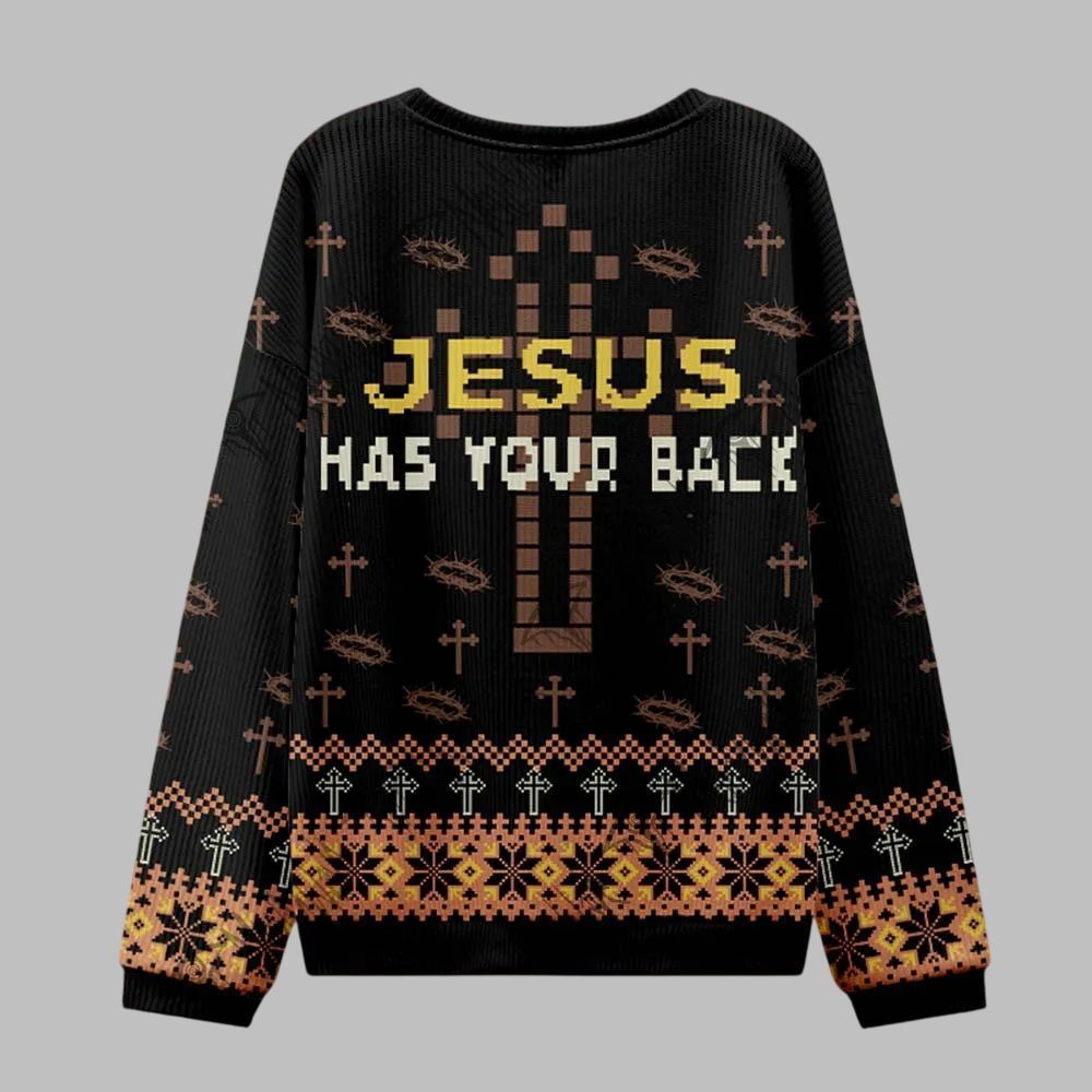 2025 Christmas Jesus has Your Back Ugly Christmas Sweater | A Heavenly Design with a Hilarious Twist