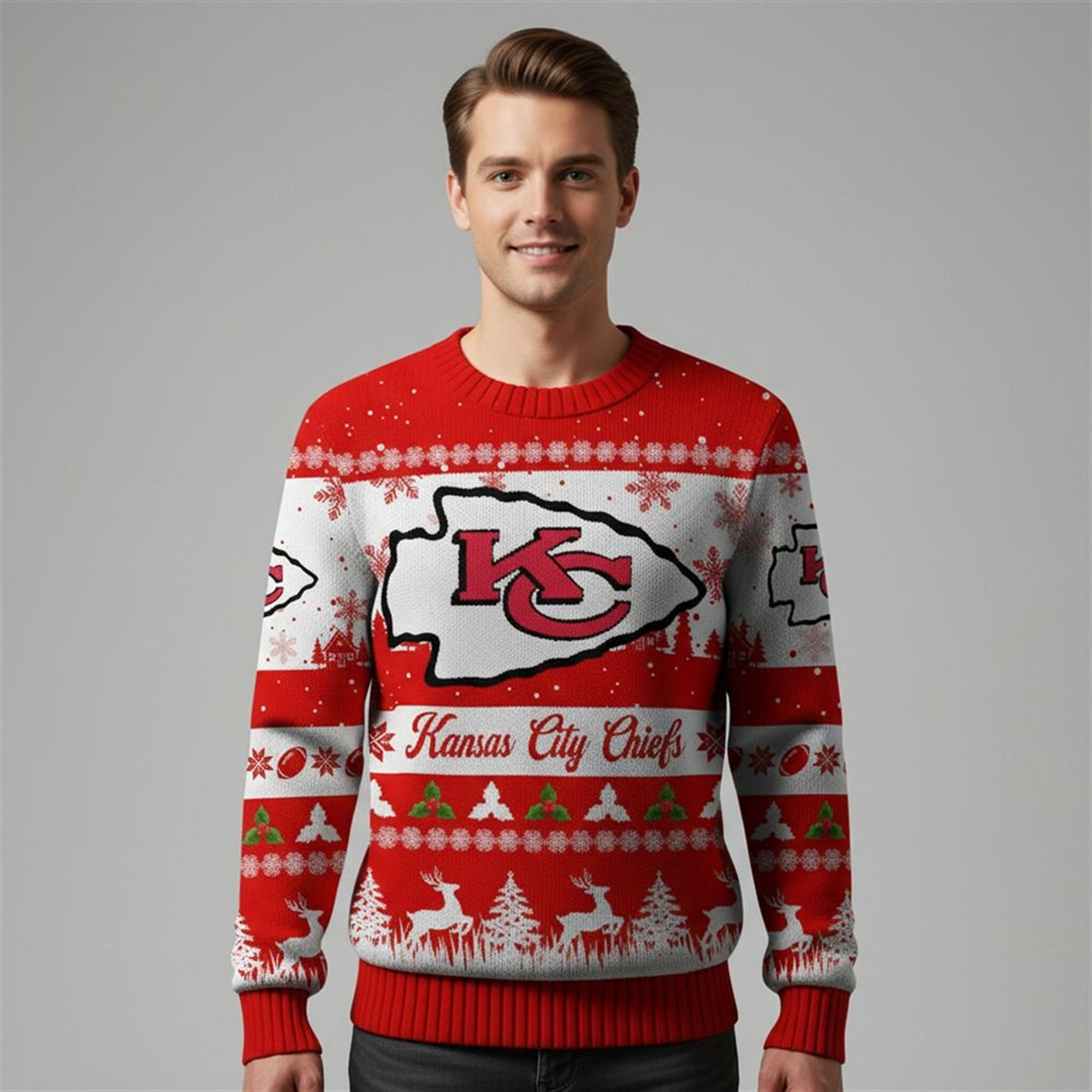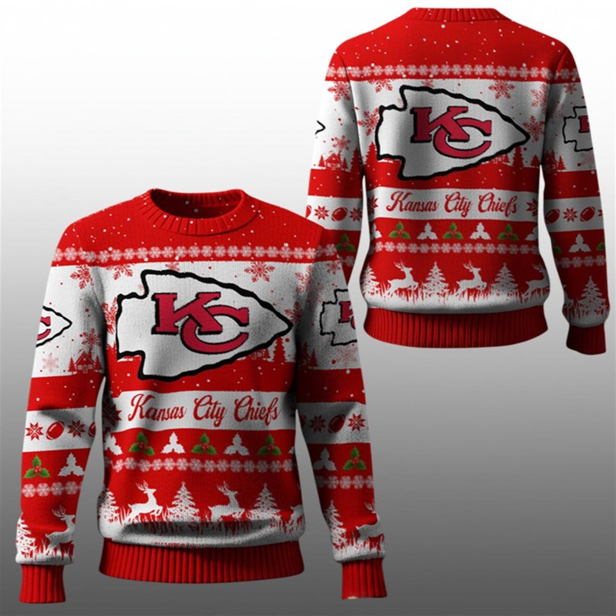 Kansas City Chiefs Reindeer & Tree Ugly Sweater | Arrowhead Pride and Holiday Spirit