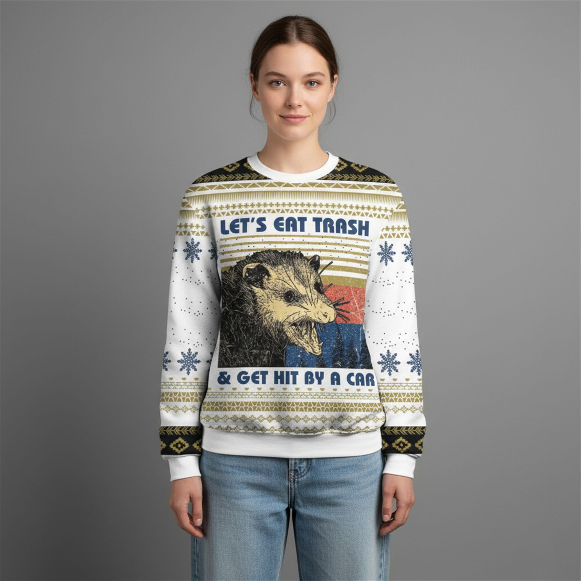 Let’s Eat Trash Get Hit By A Car Opossum Ugly Sweater | Embrace the Chaos