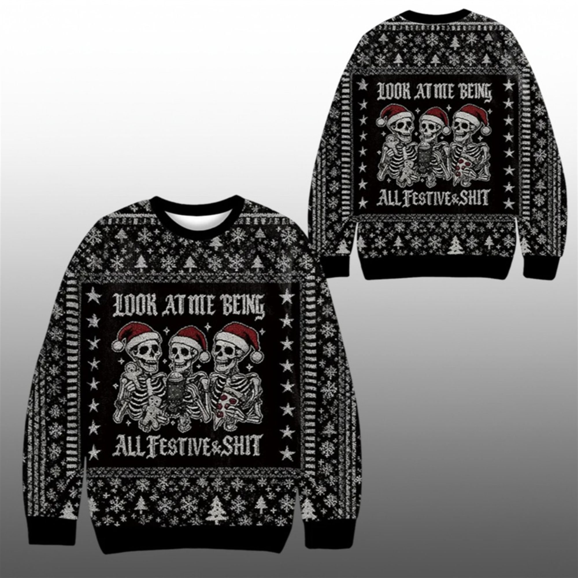 Look At Me Being All Festive Skeleton Ugly Sweater | Sarcastic Goth Holiday Pullover