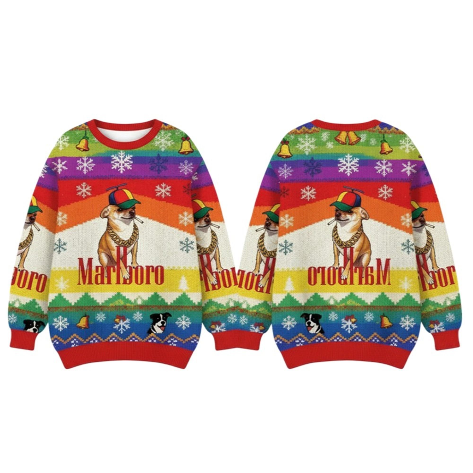 Marlboro Chihuahua Meme Ugly Christmas Sweater | 2025 Smoking Dog Holiday