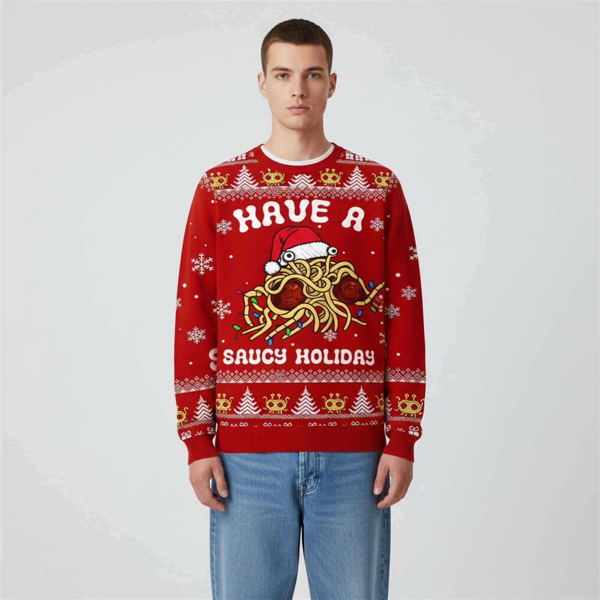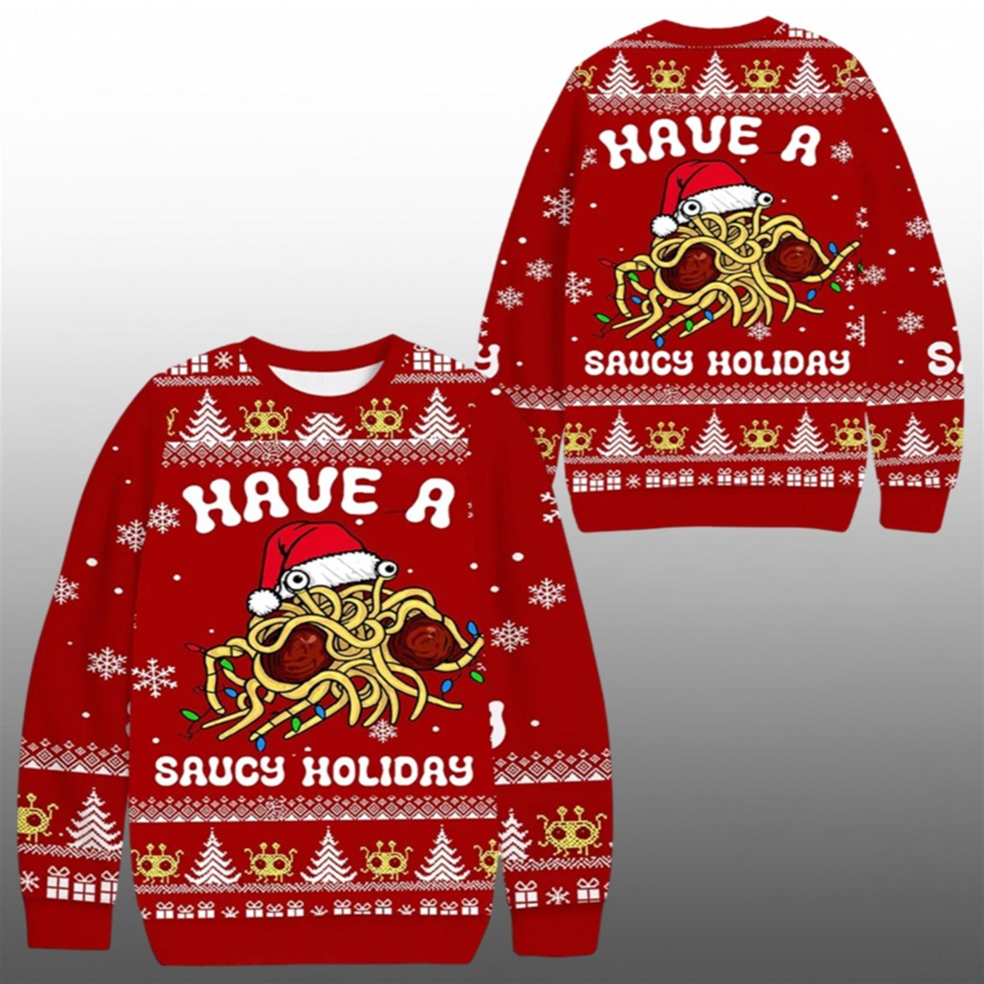 2025 Christmas Monster Have A Saucy Holiday Ugly Sweater | Pastafarian & Foodie Holiday