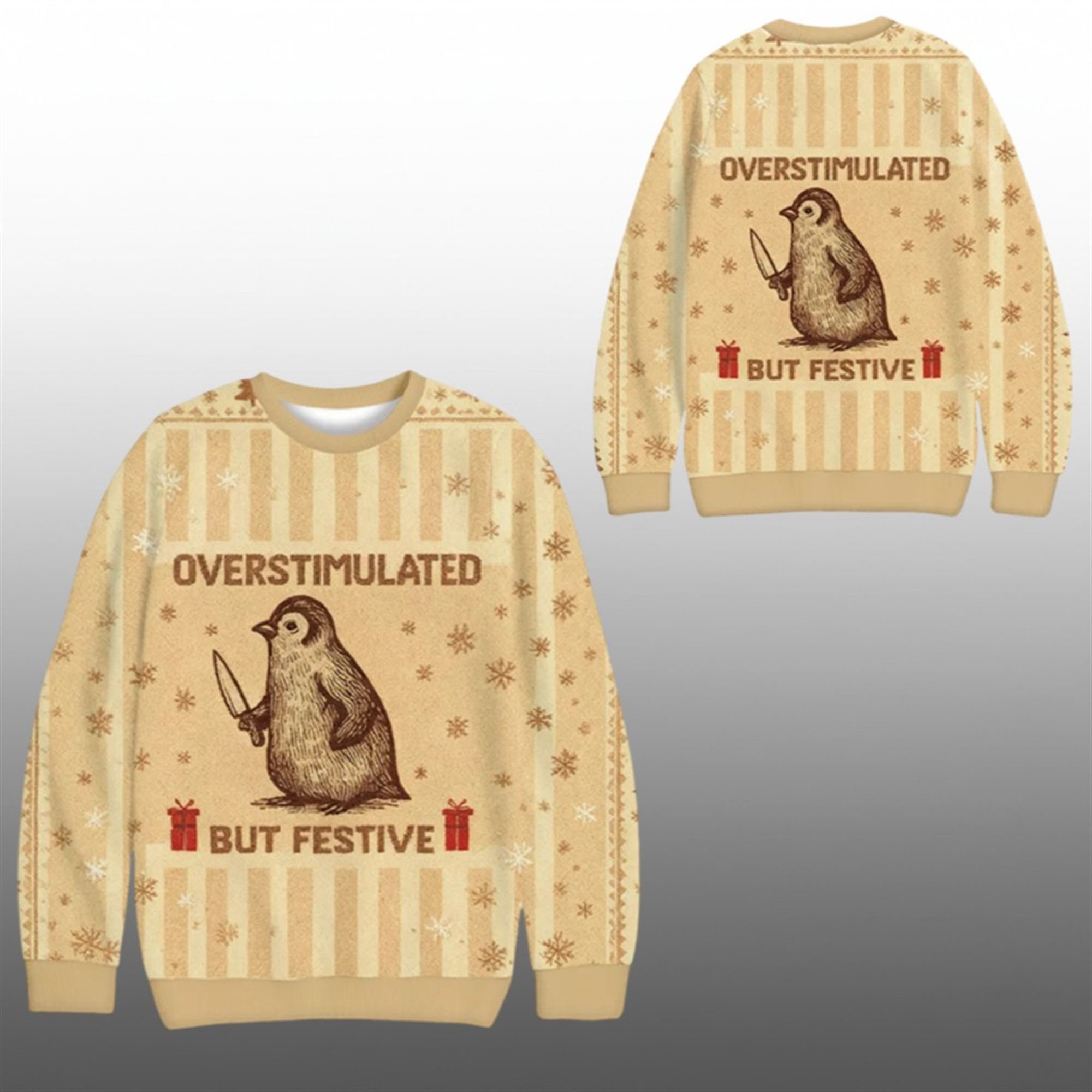 2025 Christmas Penguin Overstimulated But Festive Ugly Sweater | Embrace the Holiday Chaos