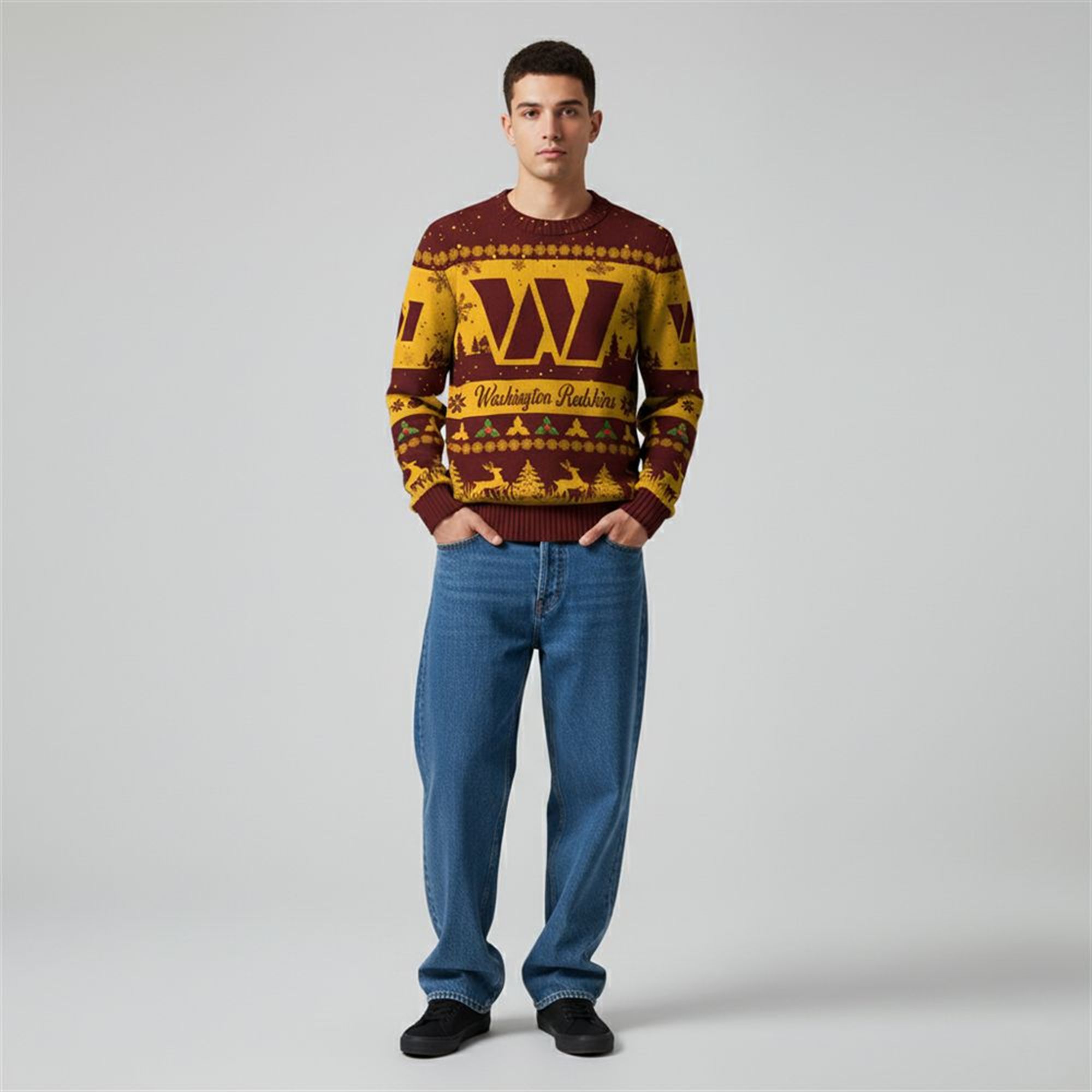 Don’t let this holiday season pass without rep’ing your true colors. The 2025 Washington Redskins Festive Reindeer Tree Ugly Sweater is a limited-run item that combines nostalgia, comfort, and festive cheer into one unforgettable package. It’s more than a sweater; it’s a conversation starter and a badge of honor for the long-time fan. Order yours today to ensure delivery before kickoff on Christmas Day!