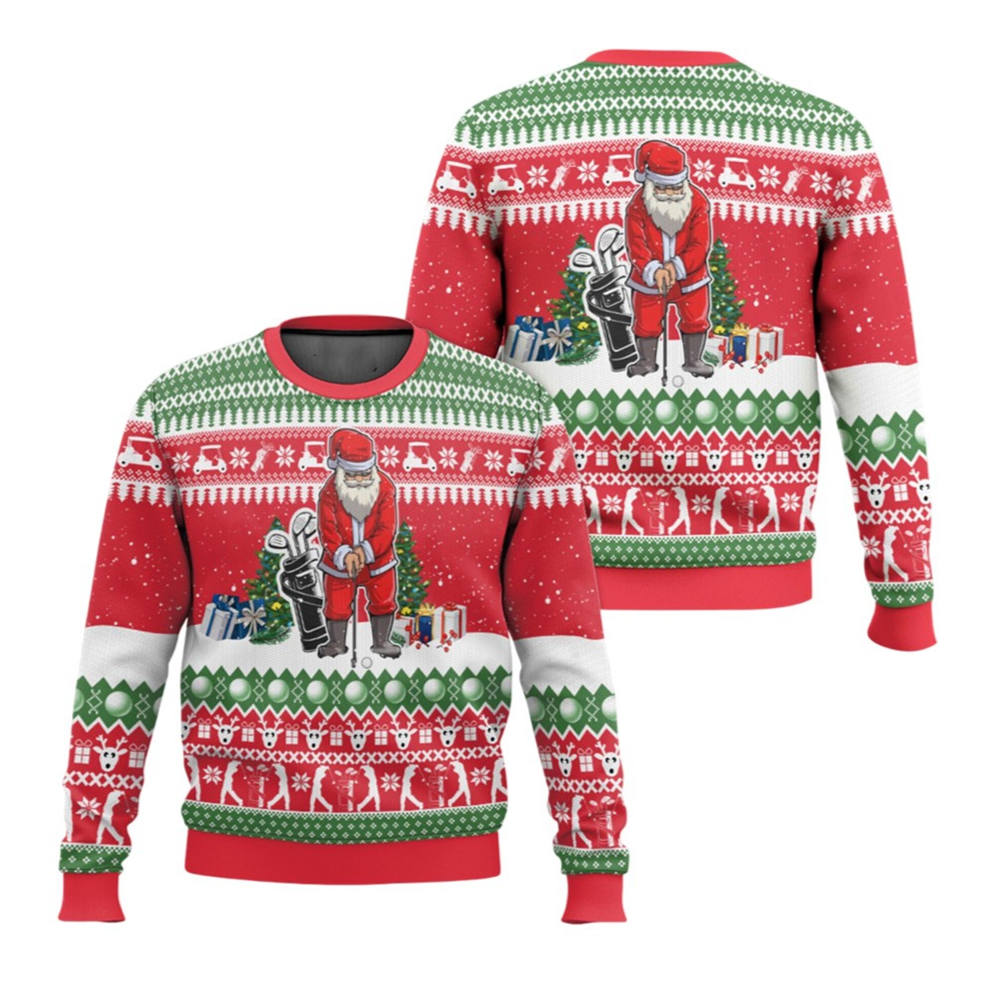 2025 Christmas Santa Playing Golf Ugly Sweater | Swing into the Holiday Spirit