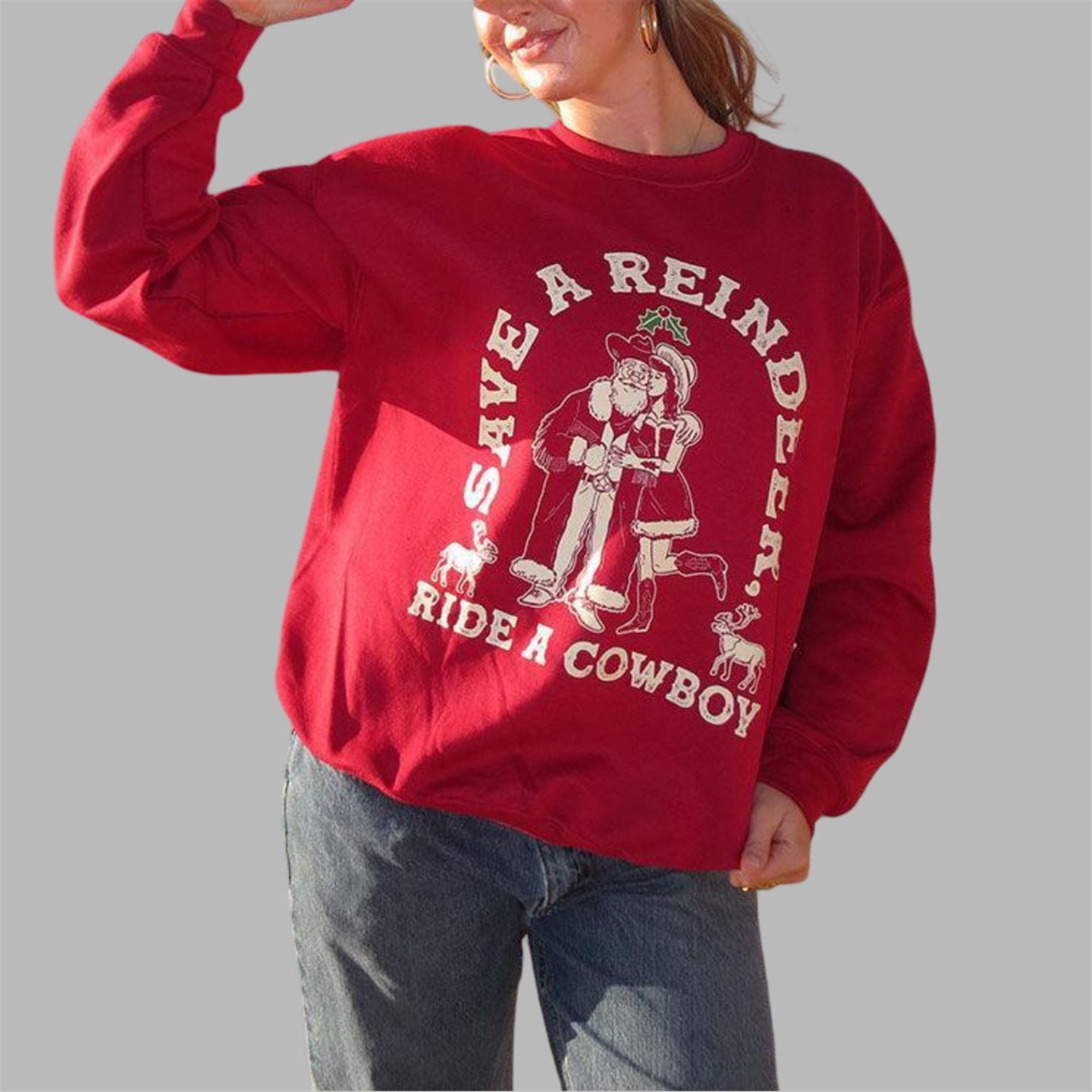 Struggling to find a unique gift? This Save A Reindeer Ride A Cowboy Ugly Sweater is the ultimate present for that person on your list who has everything—especially if they have a sense of humor.