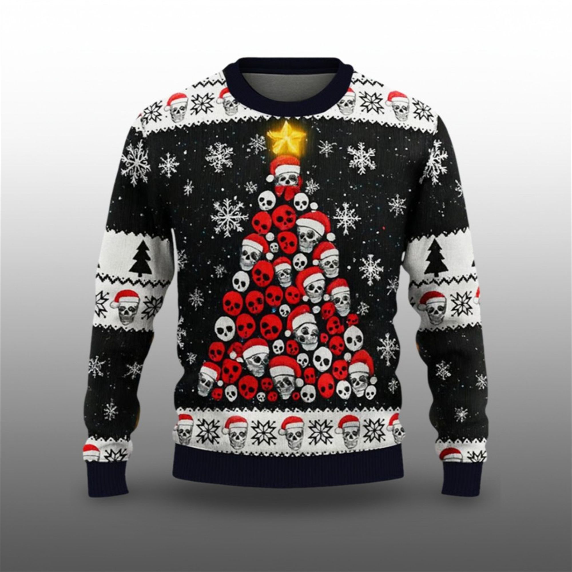 2025 Christmas Skull Tree Christmas Ugly Sweater | A Hauntingly Festive Masterpiece