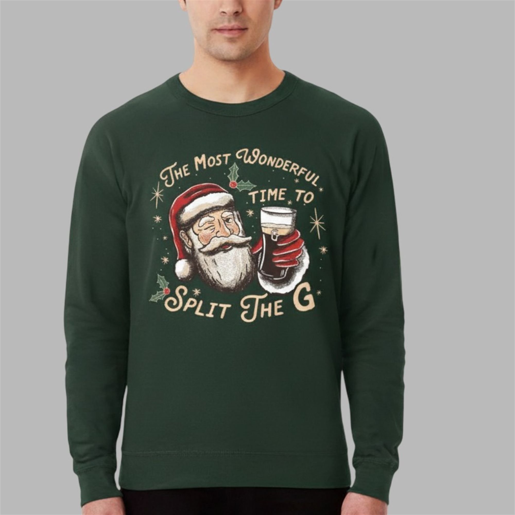 The design masterfully blends classic holiday text with a witty, modern slang term, reading: “The Most Wonderful Time… to Split the G.” It’s the perfect, subtle nod to pub culture that will have some people asking and others smiling in immediate understanding.