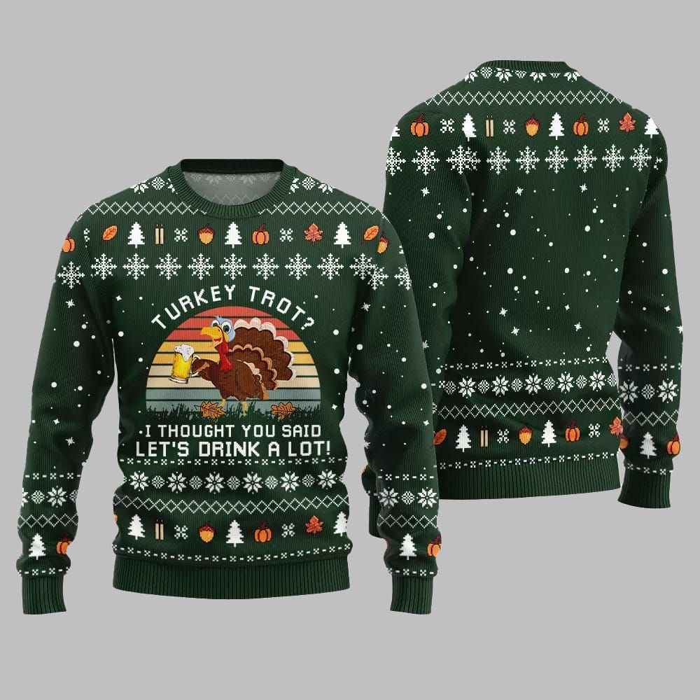 2025 Christmas Turkey Trot I Thought You Said Lets Drink A Lot Ugly Christmas Sweater – Unleash Your Holiday SpiritÂ