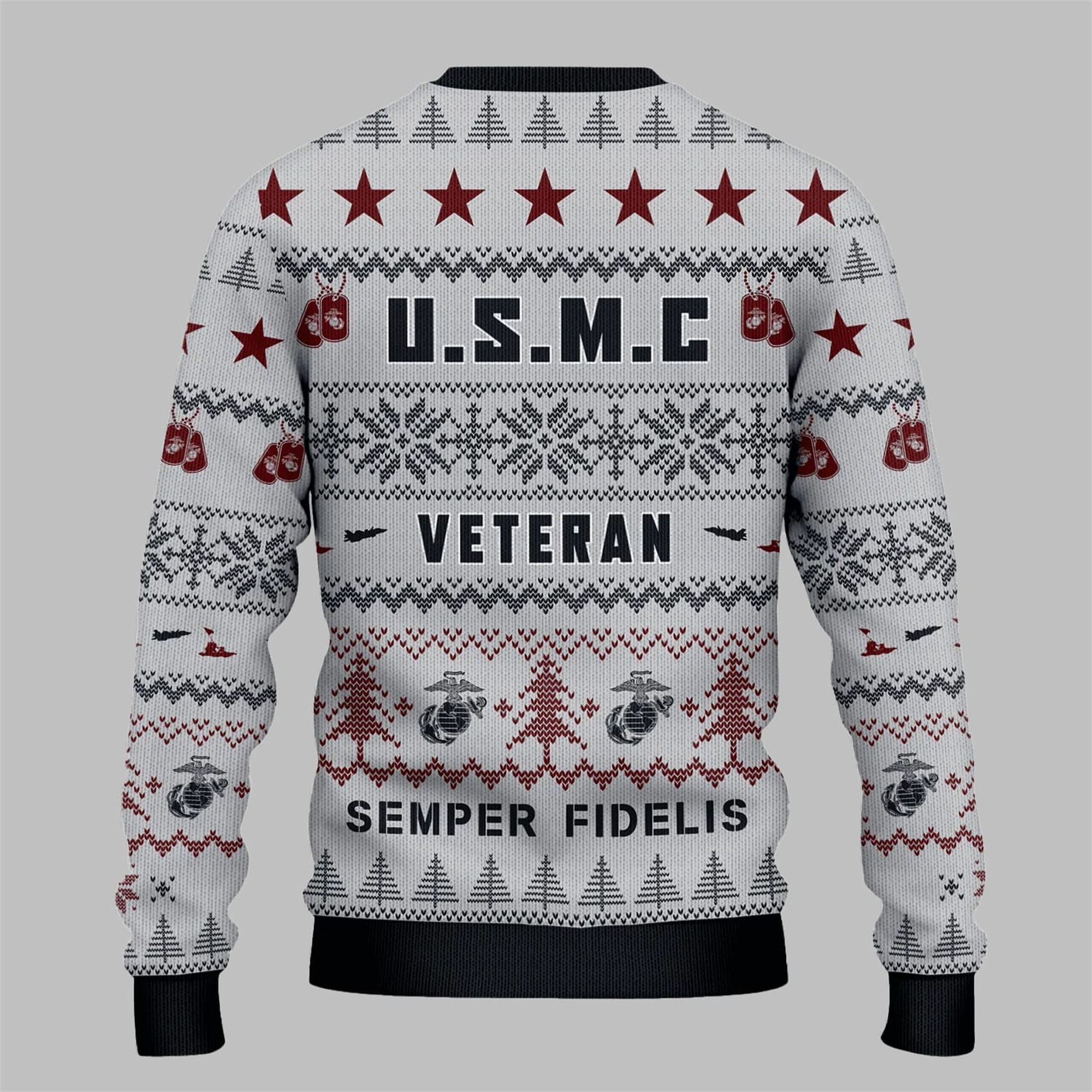 2025 Christmas USMC Veteran Semper Fi Ugly Sweater | Honor, Courage, and Christmas Cheer
