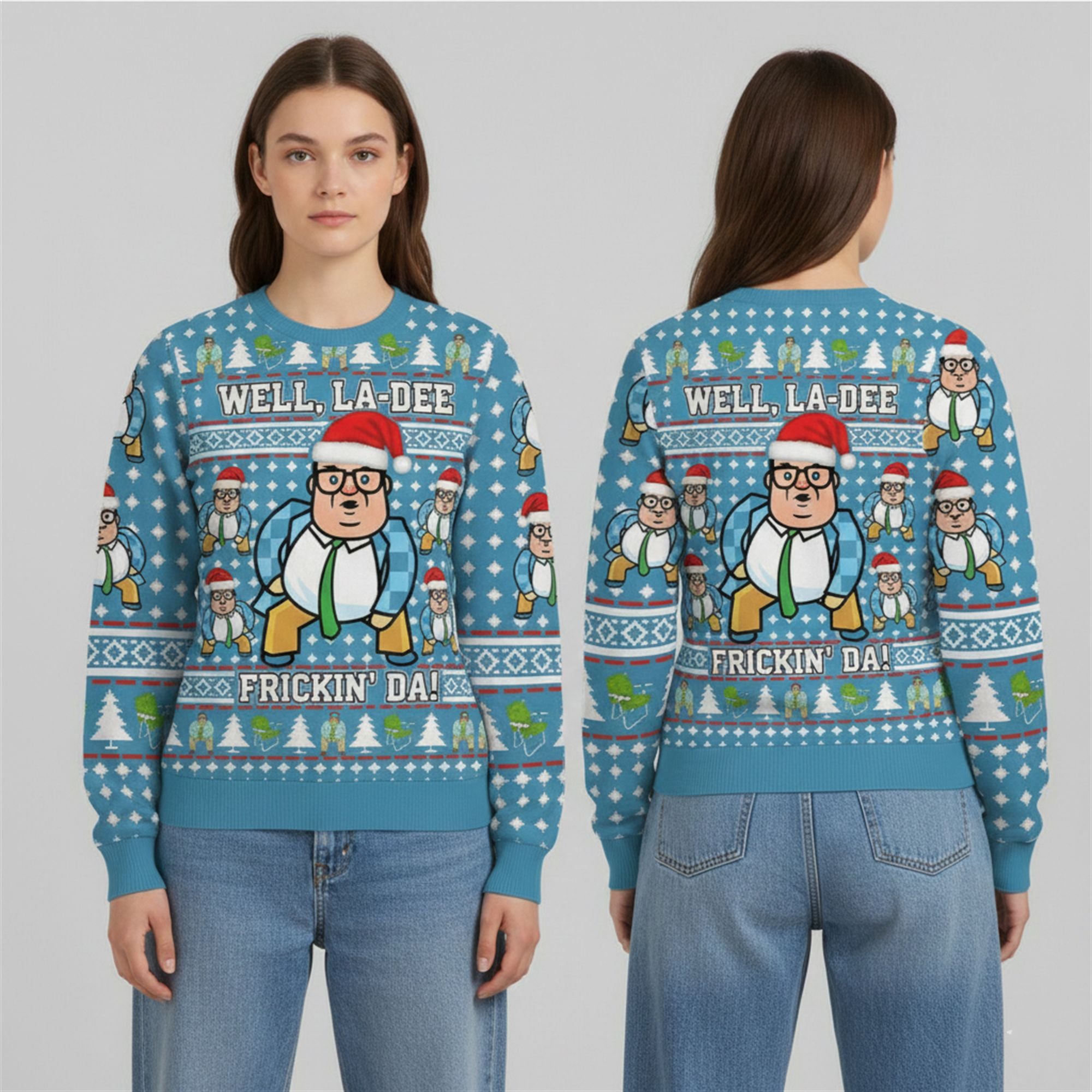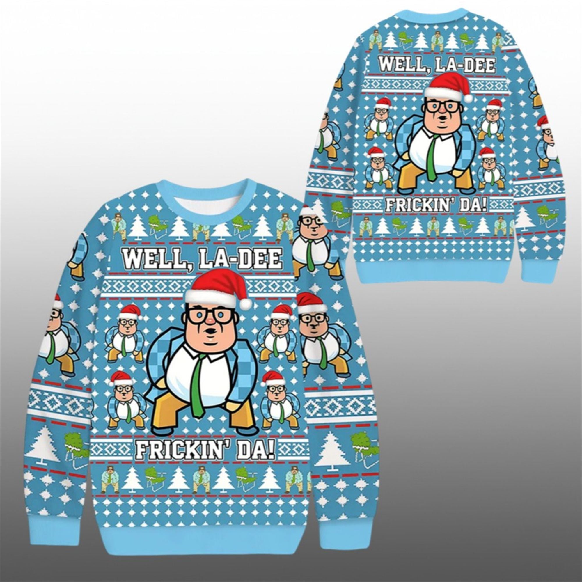 This holiday season, channel the chaotic energy of the world’s most aggressive motivational speaker with the 2025 Christmas Well La Dee Frickin Da Ugly Sweater. Paying homage to one of the most iconic sketches in Saturday Night Live history, this sweater features the legendary Chris Farley character decked out in a festive Santa hat.