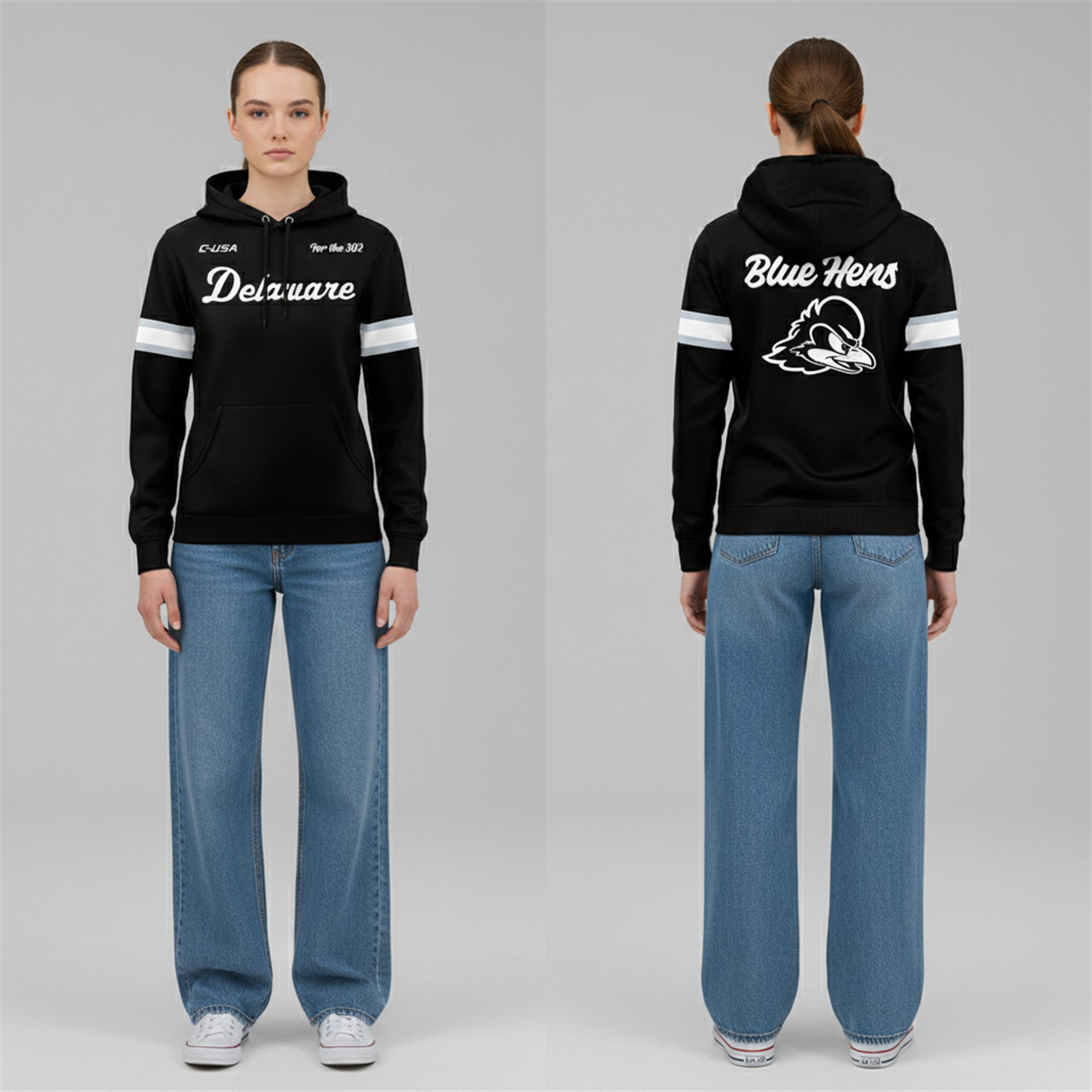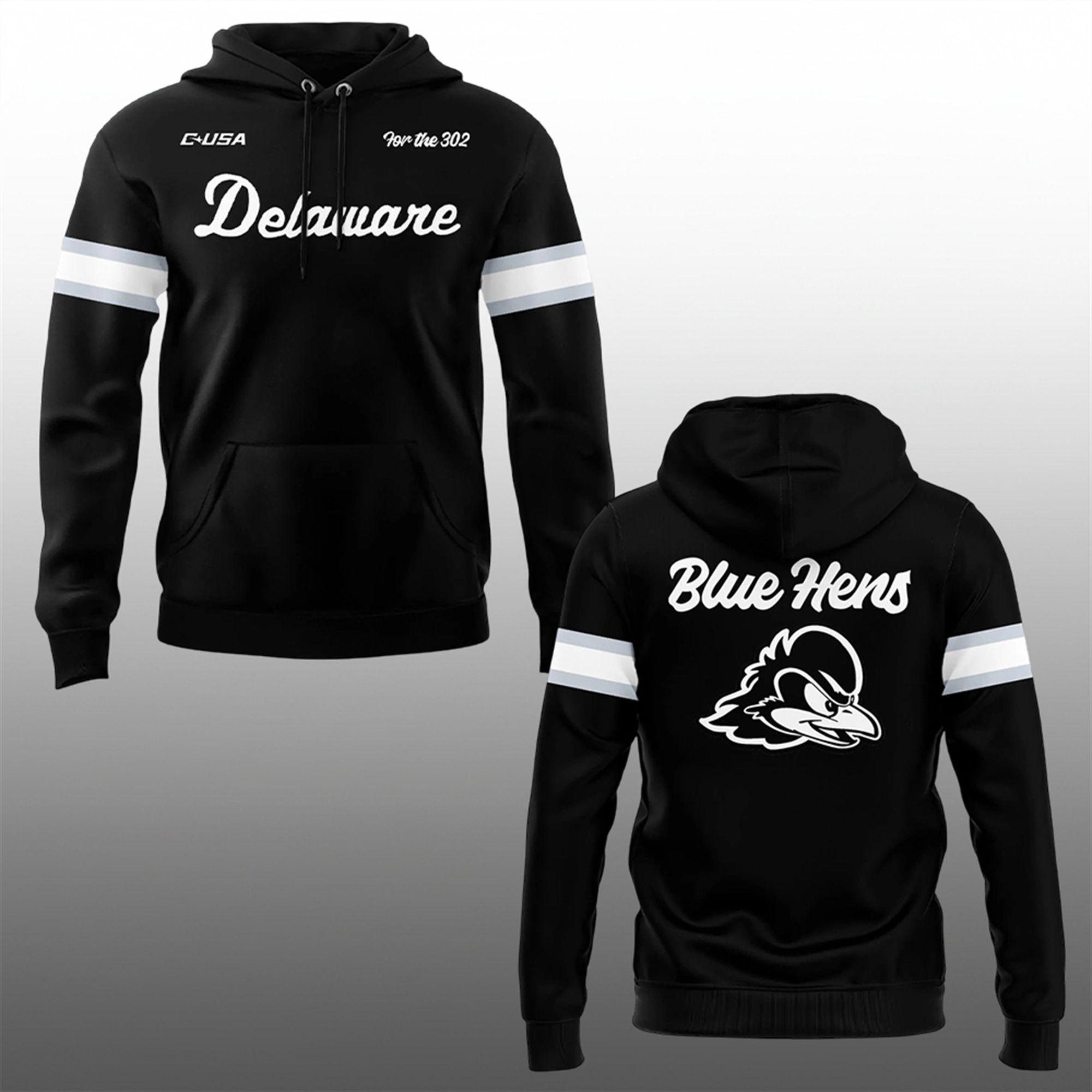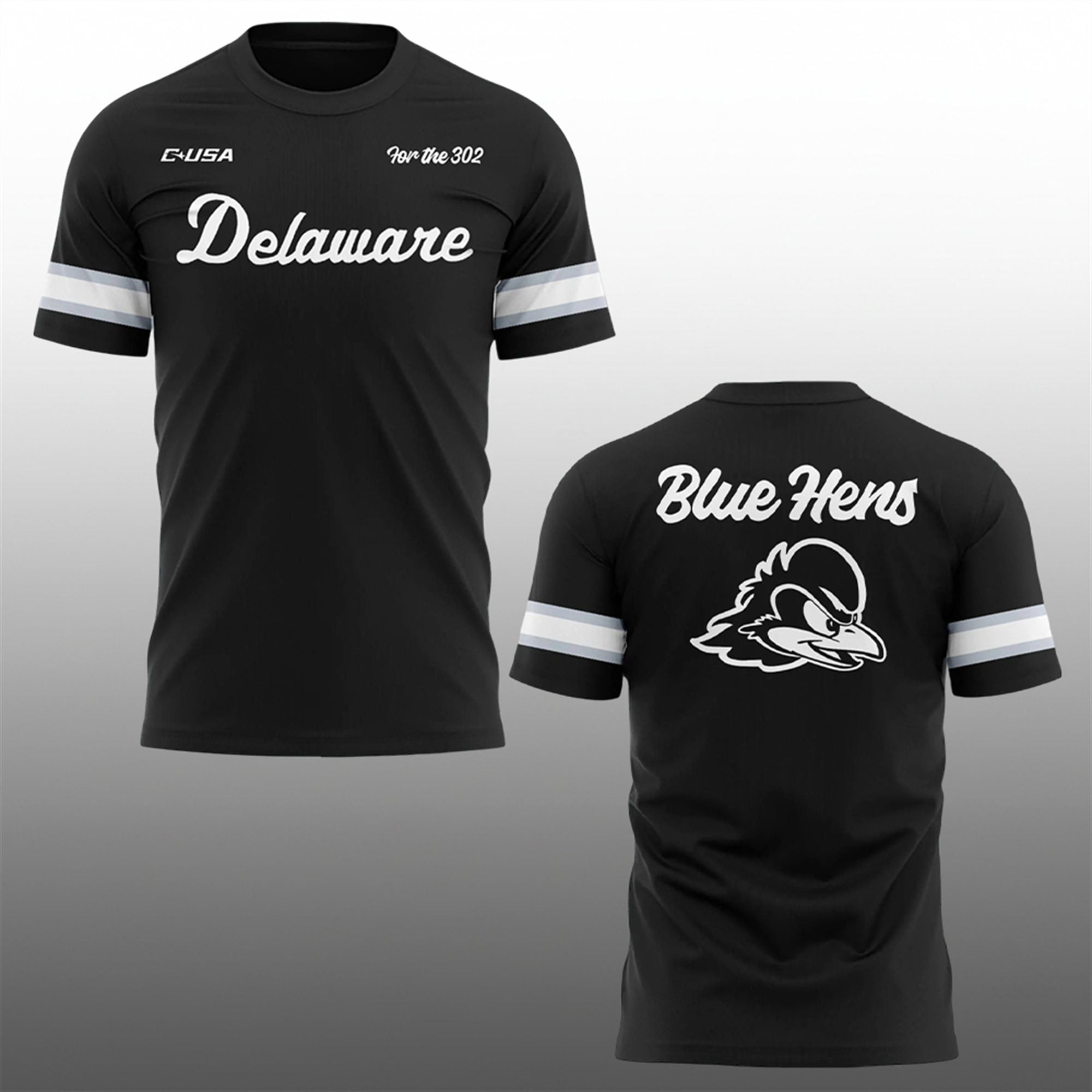 Designed for the loyal fans who have stood by the program from Tubby Raymond Field to the national stage, this shirt embodies the grit, spirit, and unity of the entire state. The sleek black design features the classic “Delaware” script across the chest, flanked by the C-USA logo and the rallying cry “For The 302“—a tribute to the fans, families, and alumni who make Delaware football legendary. The back boldly displays “Blue Hens” above the fierce, determined mascot logo, ensuring your allegiance is visible from every angle in the stadium.