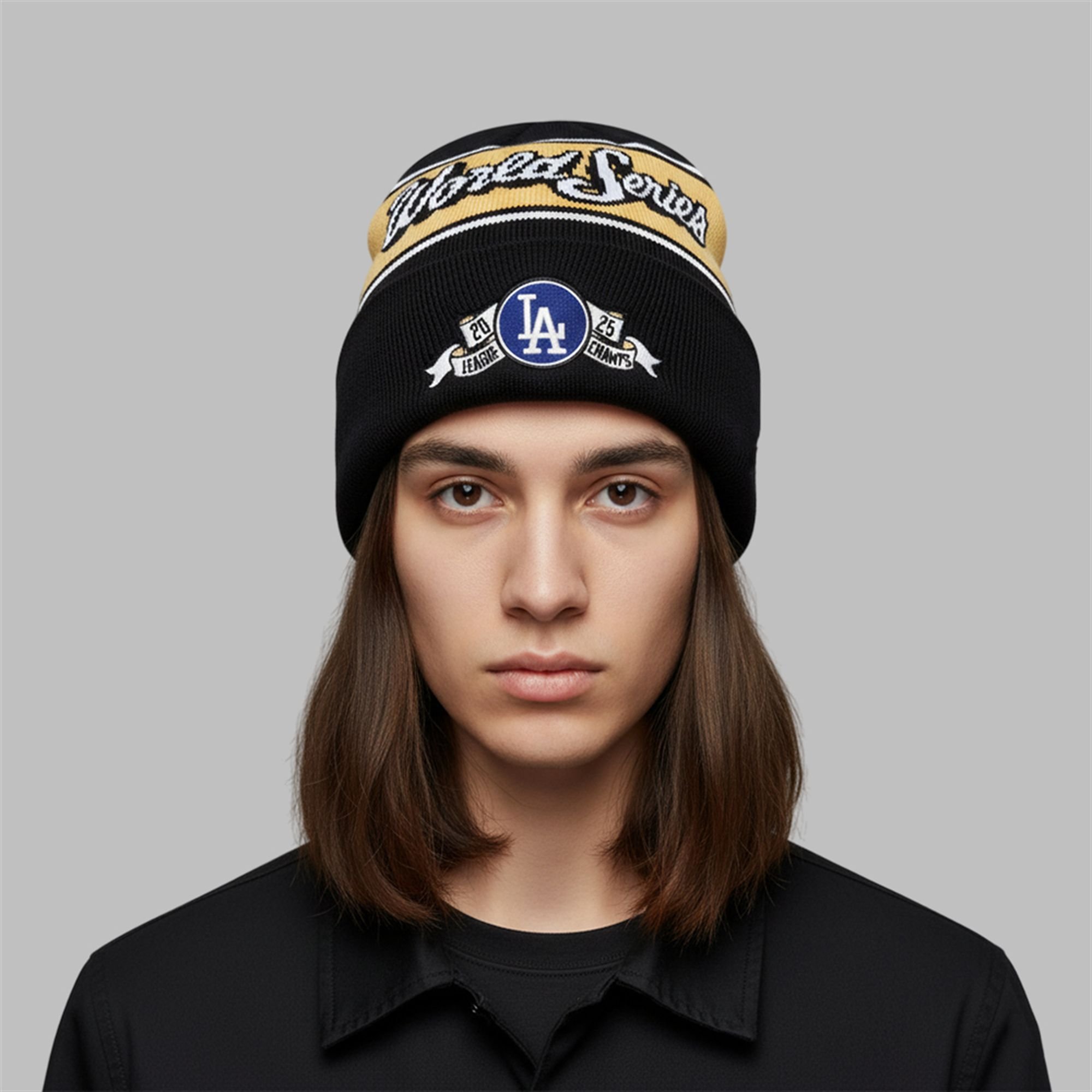 This isn’t just another piece of fan gear; it’s a time capsule. The 2025 LA Dodgers season will be talked about for generations, and this beanie is your proof that you were there. The design boldly celebrates the team’s dual achievements: the prominent, high-quality embroidered patch on the cuff proudly displays the iconic “LA” logo, flanked by commemorative banners reading “2025 League Champs.” This patch signifies the grit and determination it took to conquer the league.