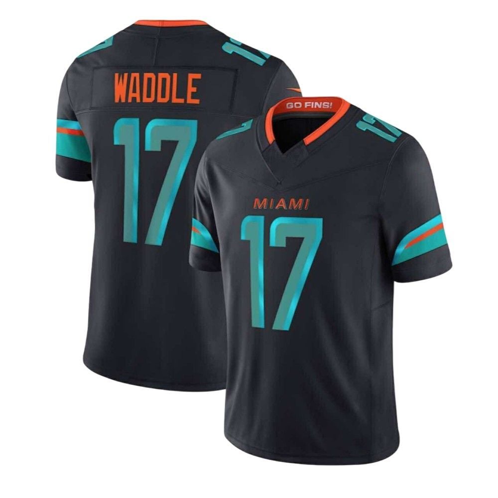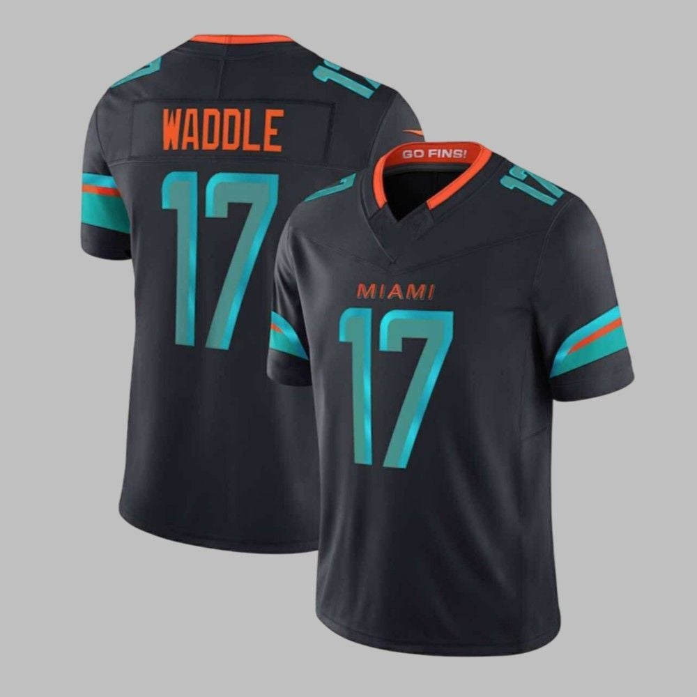 The stunning “Dark Water” color scheme, a deep and intimidating charcoal grey, serves as the perfect canvas for the vibrant aqua and electric orange accents that pulse with the energy of Hard Rock Stadium. This jersey captures the essence of a predator lurking beneath the surface, ready to strike. Whether you’re cheering from the stands, hosting a game day party, or representing your team on the streets, this jersey ensures you do it with unparalleled style and passion. It’s built for the roaring crowds, the nail-biting finishes, and the sweet taste of victory over a bitter rival.