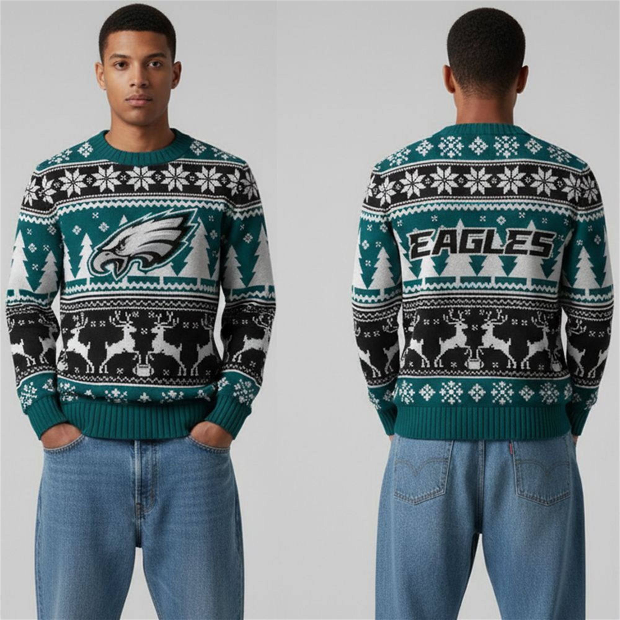 Don’t let the holiday season pass without showing your true colors. The 2025 Philadelphia Eagles Reindeer Football Ugly Christmas Sweater is more than just seasonal clothing; it is a statement of passion for one of the most dedicated fanbases. As the Eagles fight for glory on the field, you can dominate the fashion game at your holiday parties.