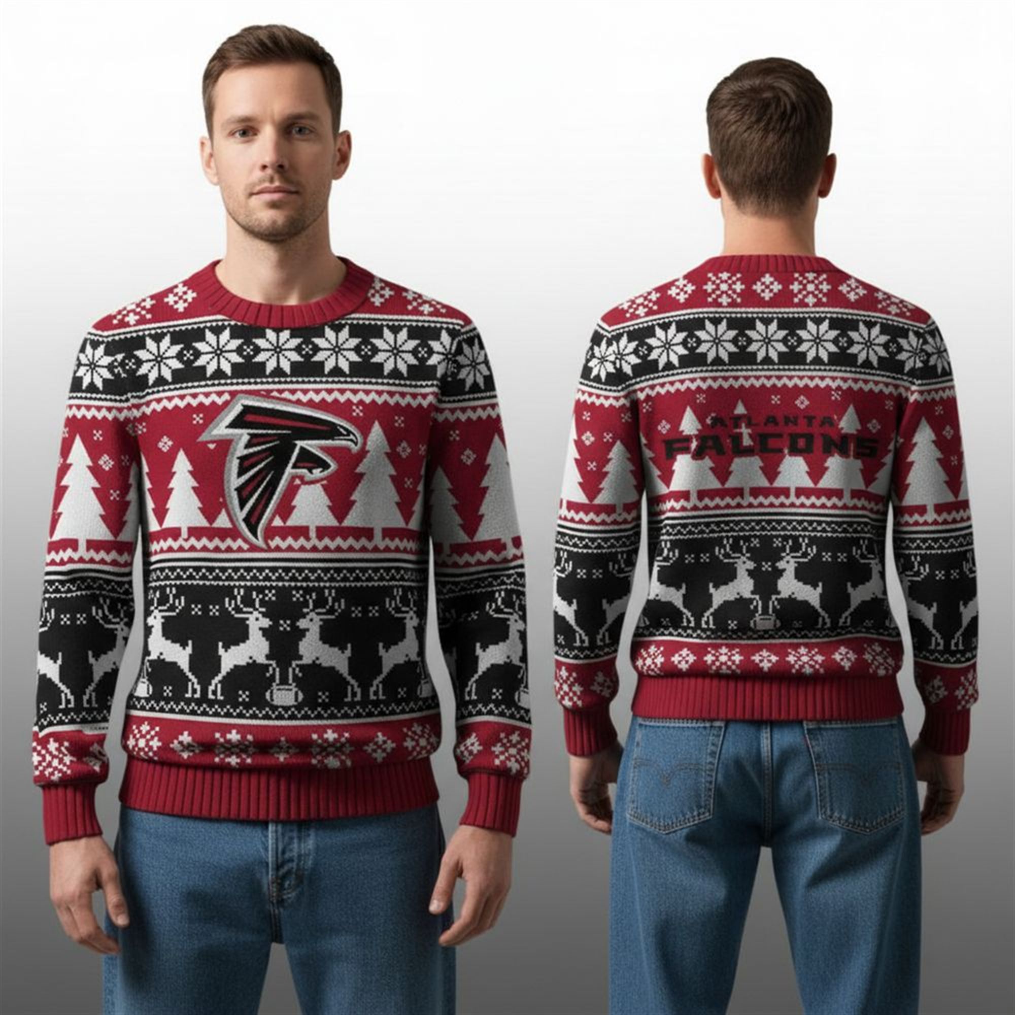 2025 Falcons Reindeer Football Christmas Ugly Sweater | Score a Touchdown in Festive