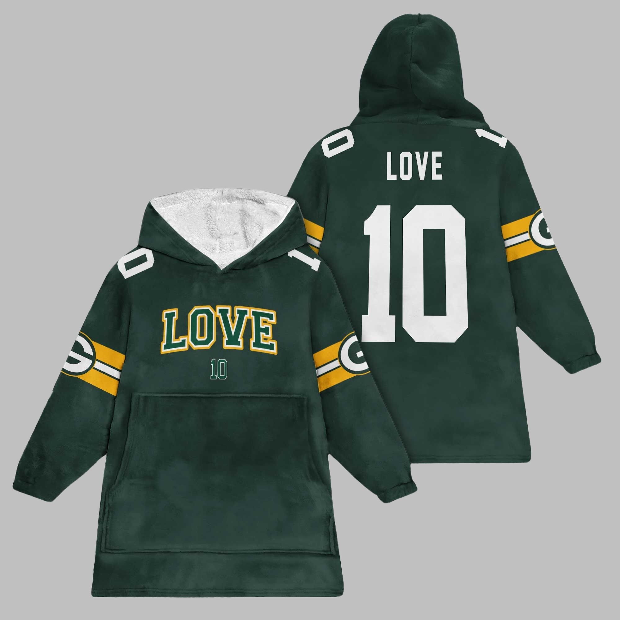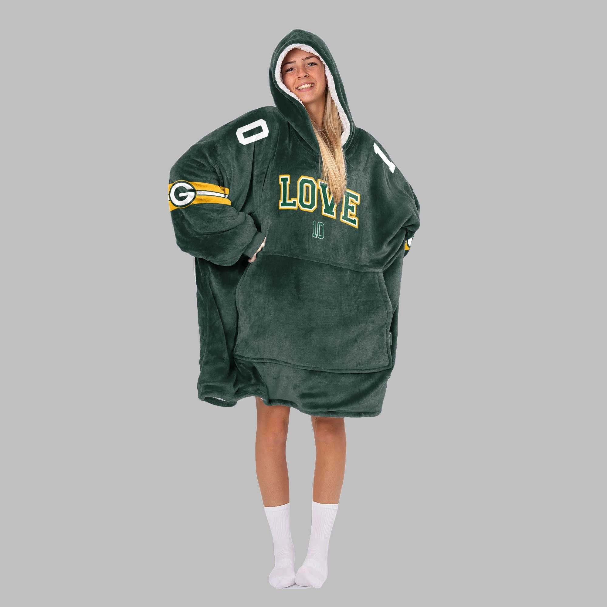 This isn’t just another hoodie. It’s your personal fortress of coziness, designed for the dedicated fan. Whether you’re braving a chilly tailgate, settling in for a primetime game on your couch, or looking for the perfect uniform for your fantasy football draft, this wearable blanket is your new go-to. It features a stunning, jersey-style design with “LOVE” and his number “10” emblazoned on the back and front, complete with team colors and sleeve stripes. It’s an unmistakable statement of your loyalty to the Pack and its new-era leader.