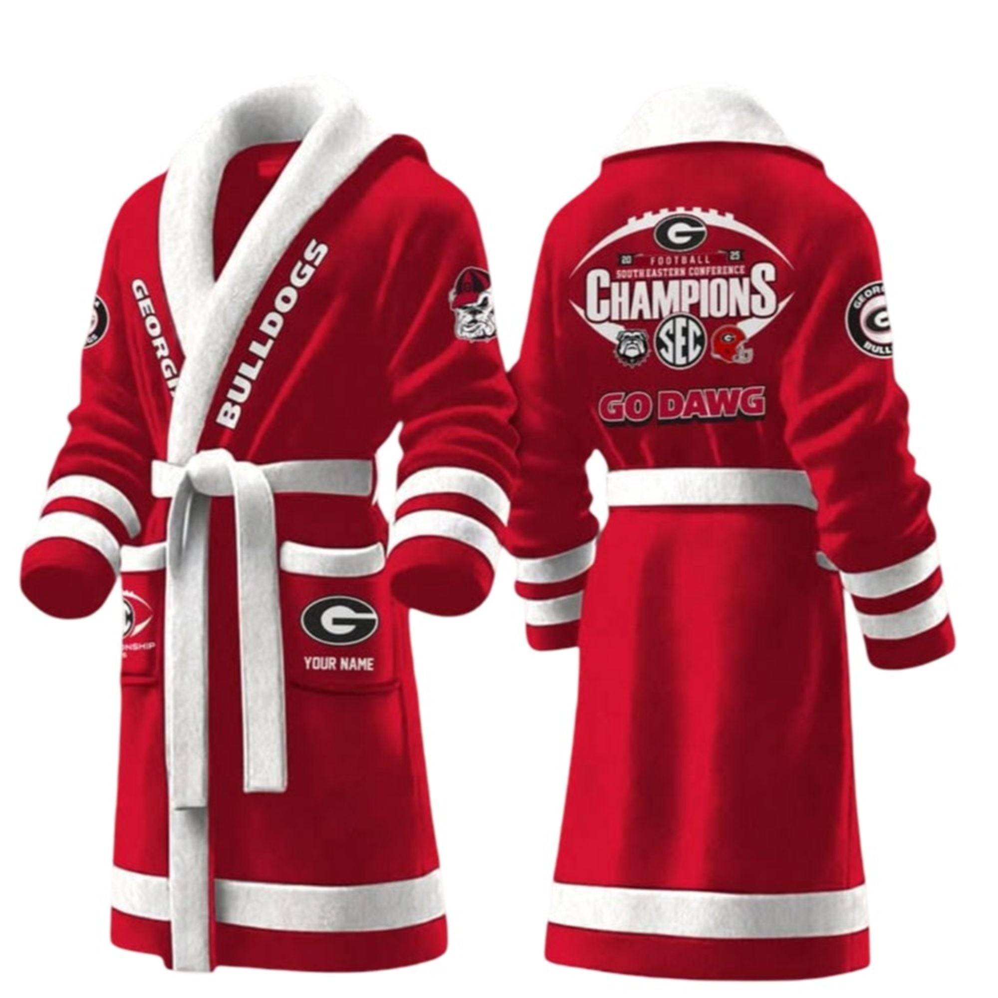 2025 Georgia Bulldogs Southeastern Conference Champions Go Dawg Fleece Bathrobe 1 1