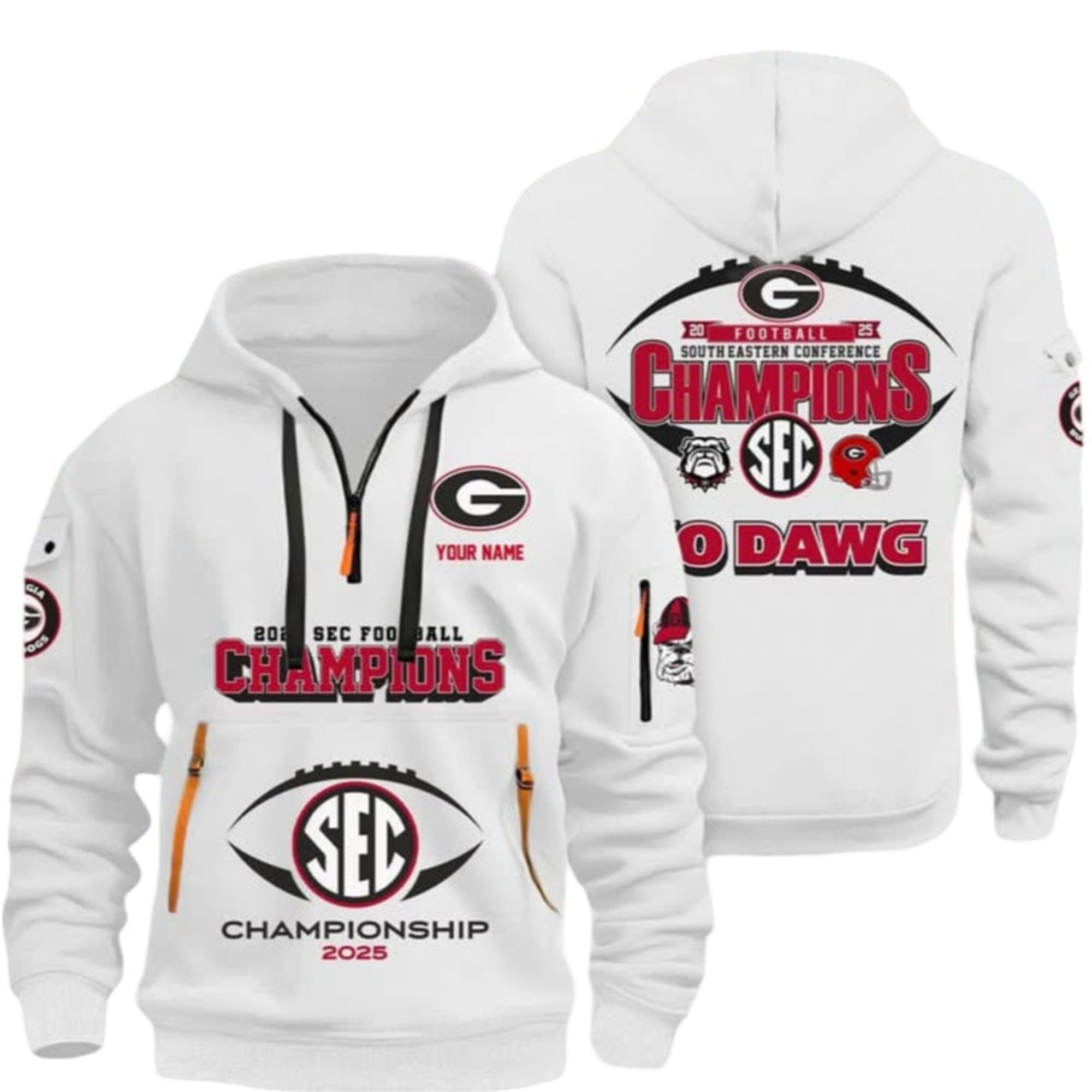 The 2025 college football season has culminated in glory for the University of Georgia, and there is no better way to commemorate this achievement than with the 2025 SEC Champions Go Dawg Quarter-Zip Hoodie. This isn’t just merchandise; it is a trophy you can wear. Designed with a crisp, clean white aesthetic that makes the red and black logos pop, this hoodie is a statement piece for the dedicated superfan.