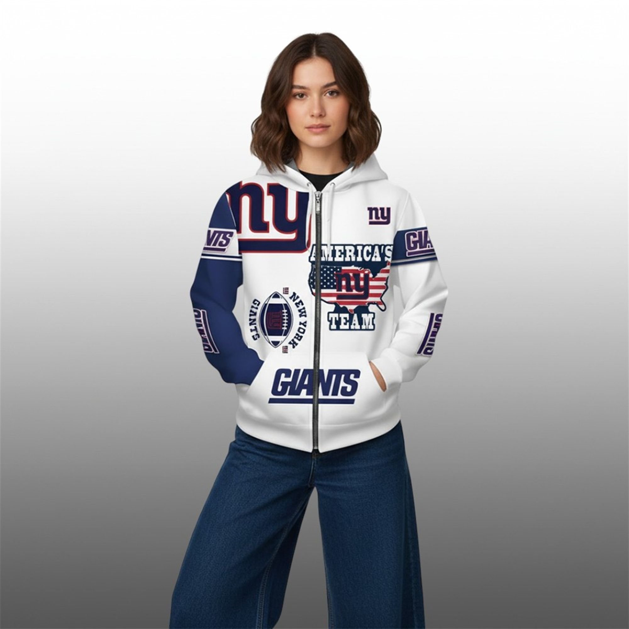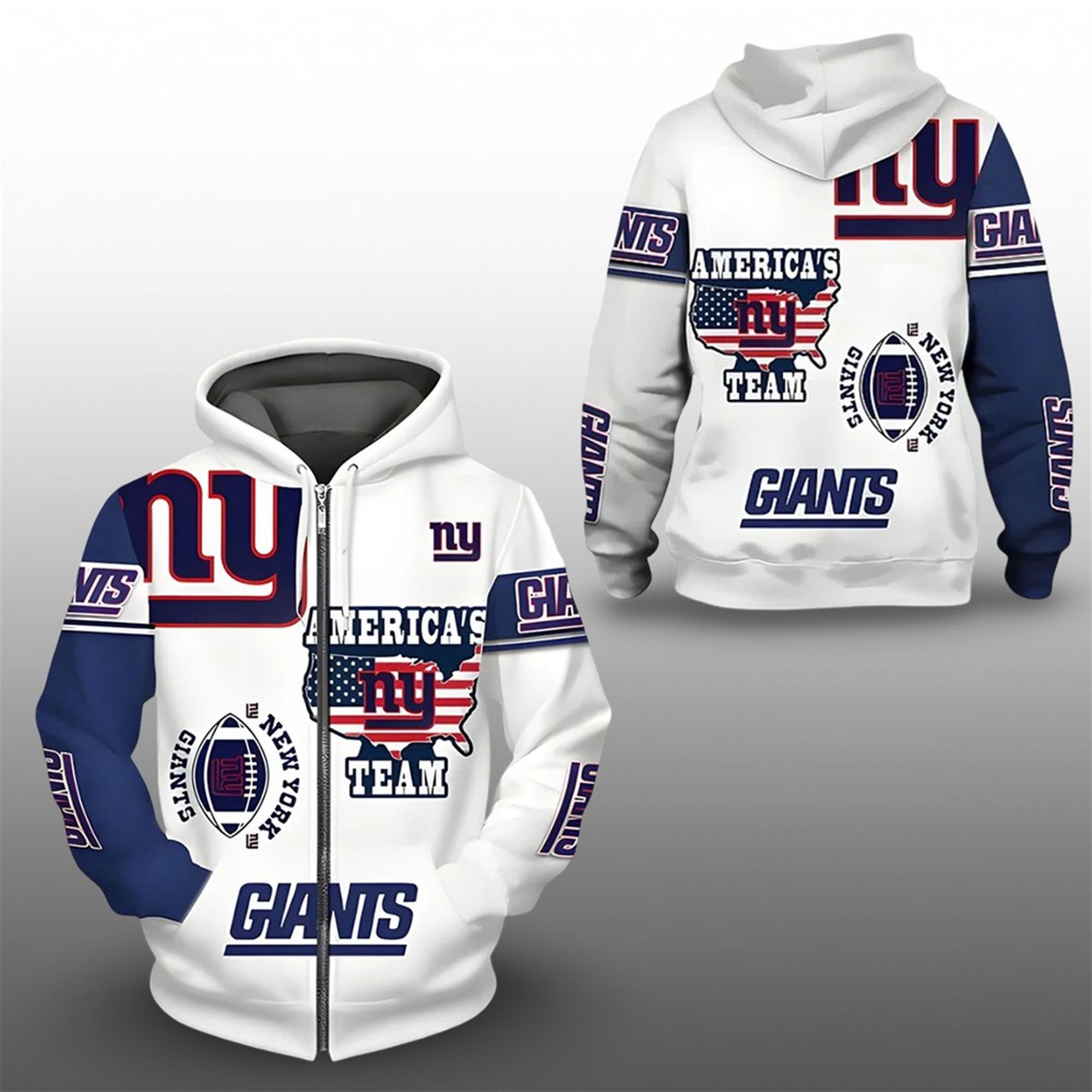 2025 New York Giants America’s NY Team Zip Hoodie | Patriotic All-Over Print Fan Gear