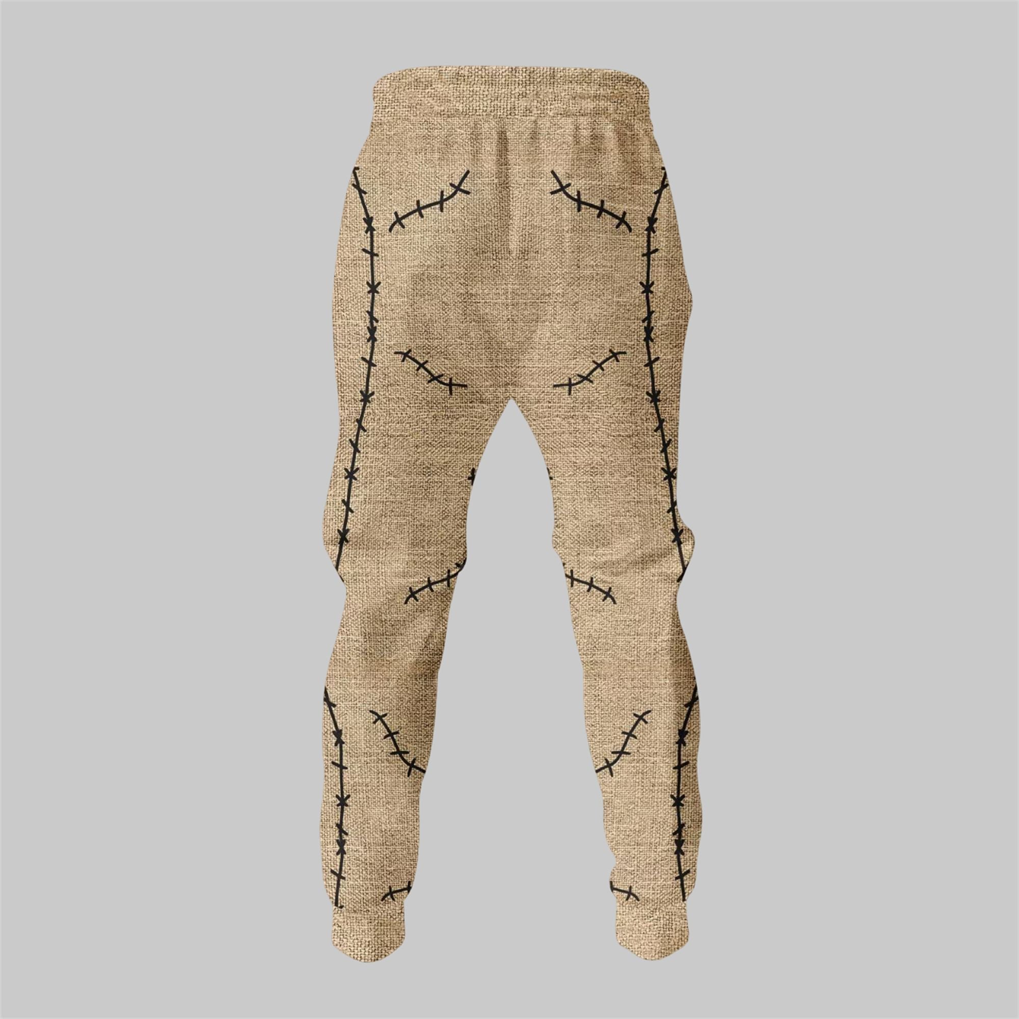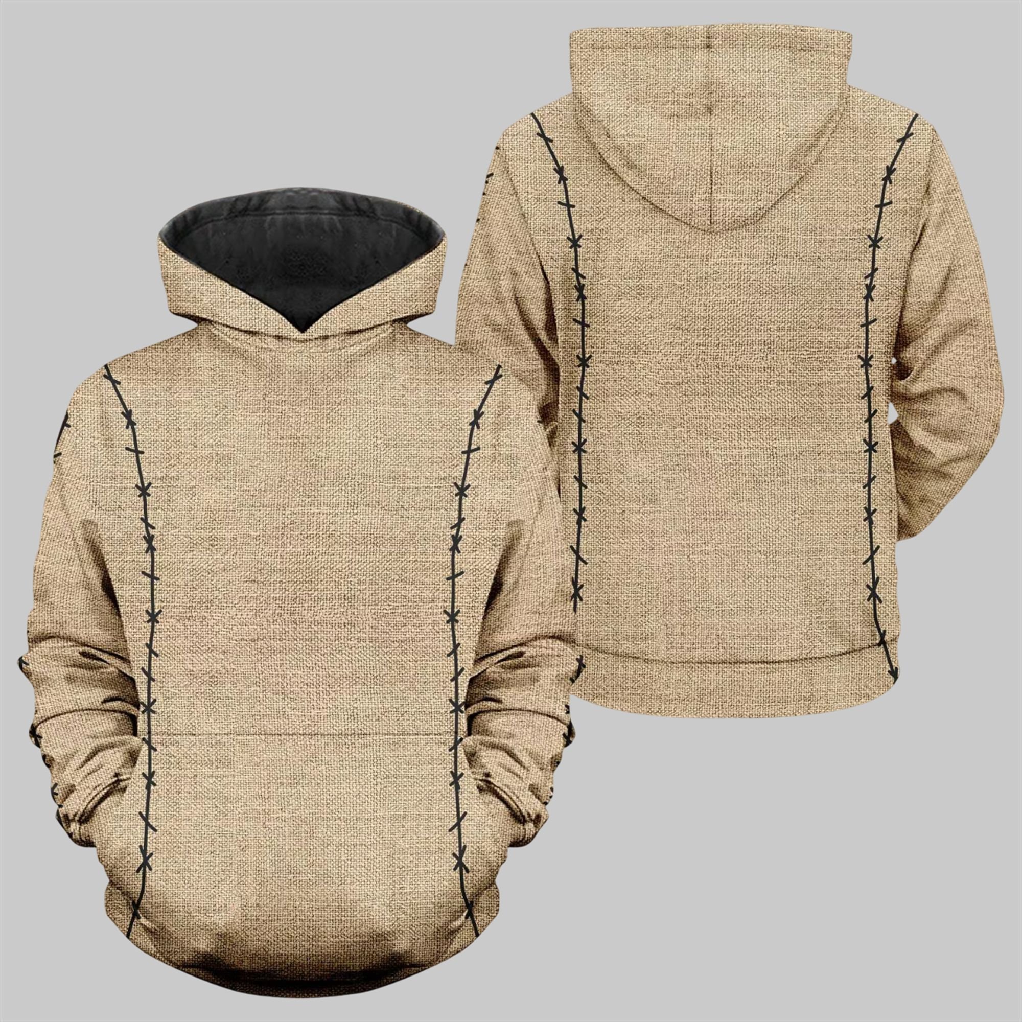 This isn’t just a hoodie; it’s a wearable piece of cinematic history. The design masterfully captures Oogie Boogie’s signature look with a high-definition, photorealistic burlap sack texture printed across the entire garment. The thick, black, sleeves, and down the front, giving you that freshly sewn-together appearance straight from Dr. Finkelstein’s lab. The deep, black-lined hood creates a shadowy effect, perfectly framing your face to mimic Oogie Boogie’s menacing grin. Every detail is crafted to ensure you look like you just stepped out of Halloween Town.