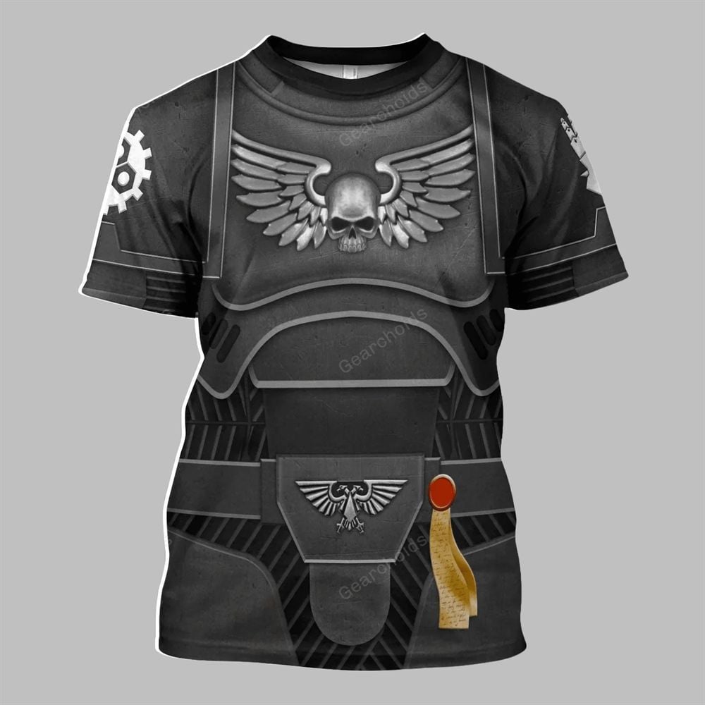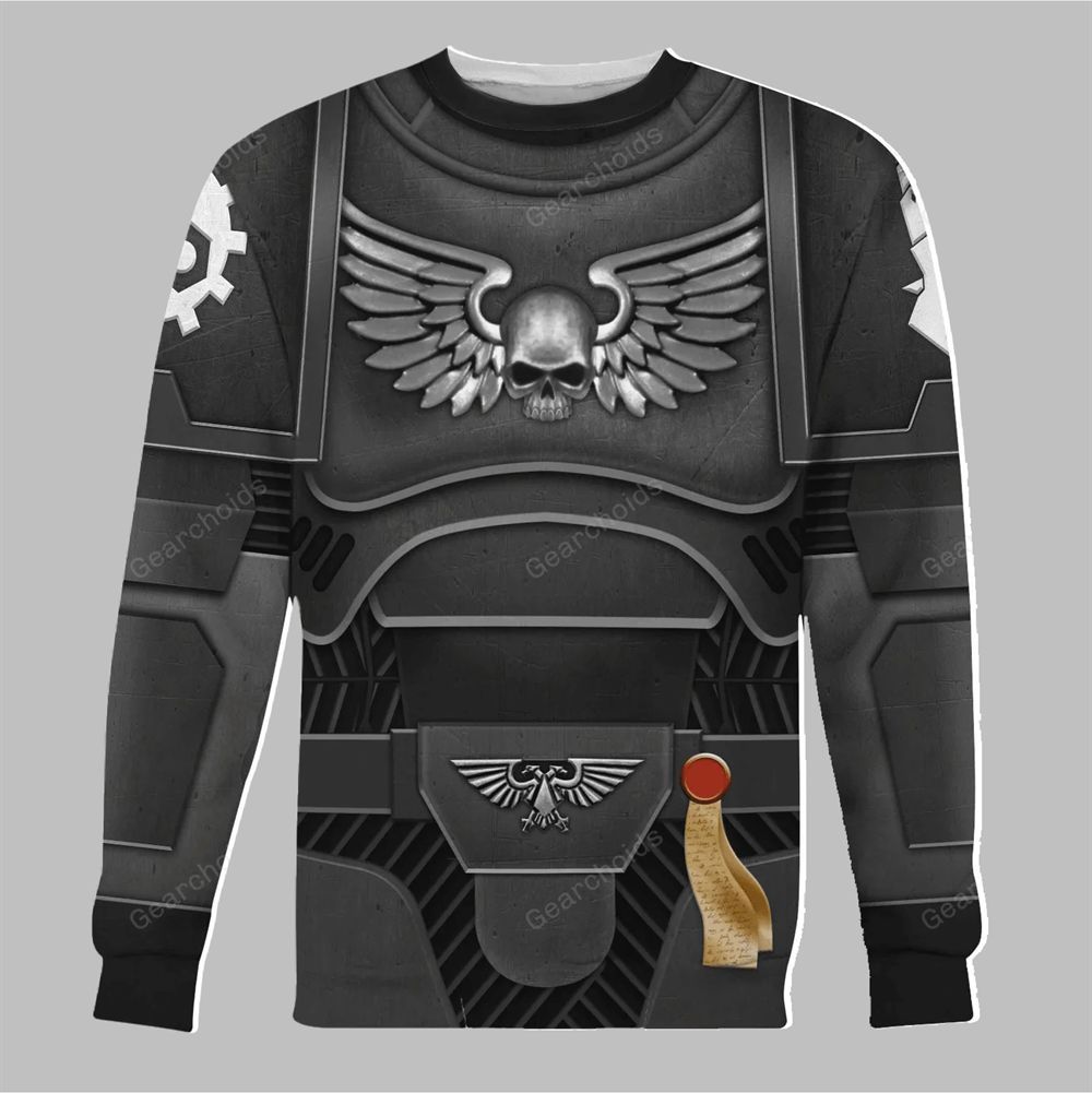 This cosplay hoodie perfectly captures their formidable presence. The design is an intricate, high-definition 3D print that flawlessly replicates the segmented plates, intricate wiring, and battle-hardened texture of Astartes power armor. Adorning the chest is the iconic Imperial Aquila and the winged skull insignia, while the shoulders and articulated joints feature the revered cog symbol of the Adeptus Mechanicus, signifying the chapter’s sacred bond with the Cult of Mars. Every detail, from the metallic sheen to the subtle weathering, has been crafted to create an immersive and authentic Warhammer 40k look.
