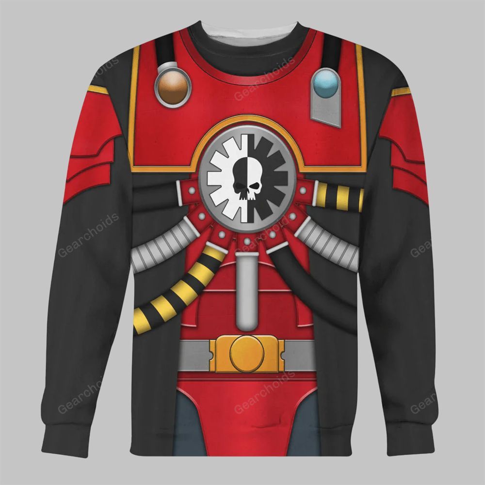 Our costume hoodie perfectly captures this unique identity. The design features the iconic half-black, half-red color scheme, instantly signaling your allegiance. Prominently displayed is the sacred cog-and-skull insignia of the Adeptus Mechanicus, a symbol of faith in the Machine God. Every detail, from the printed wiring and armored plating to the subtle mechanical accents, has been rendered in a stunning, quality 3D print that covers the entire garment. This all-over design creates a seamless, armor-like illusion that is sure to turn heads at any Halloween event, comic convention, or local gaming tournament.