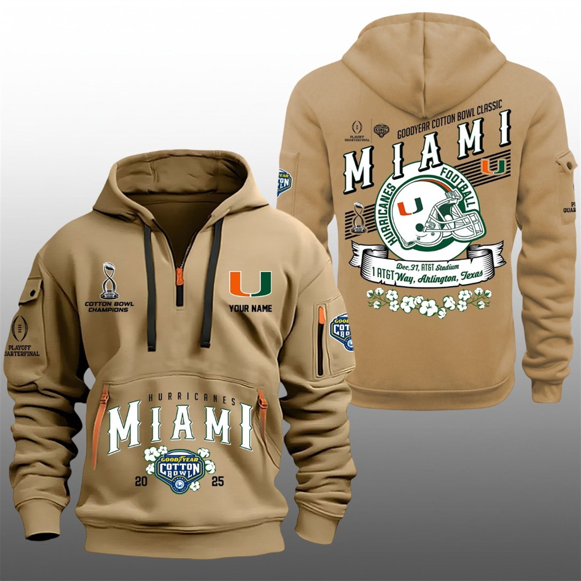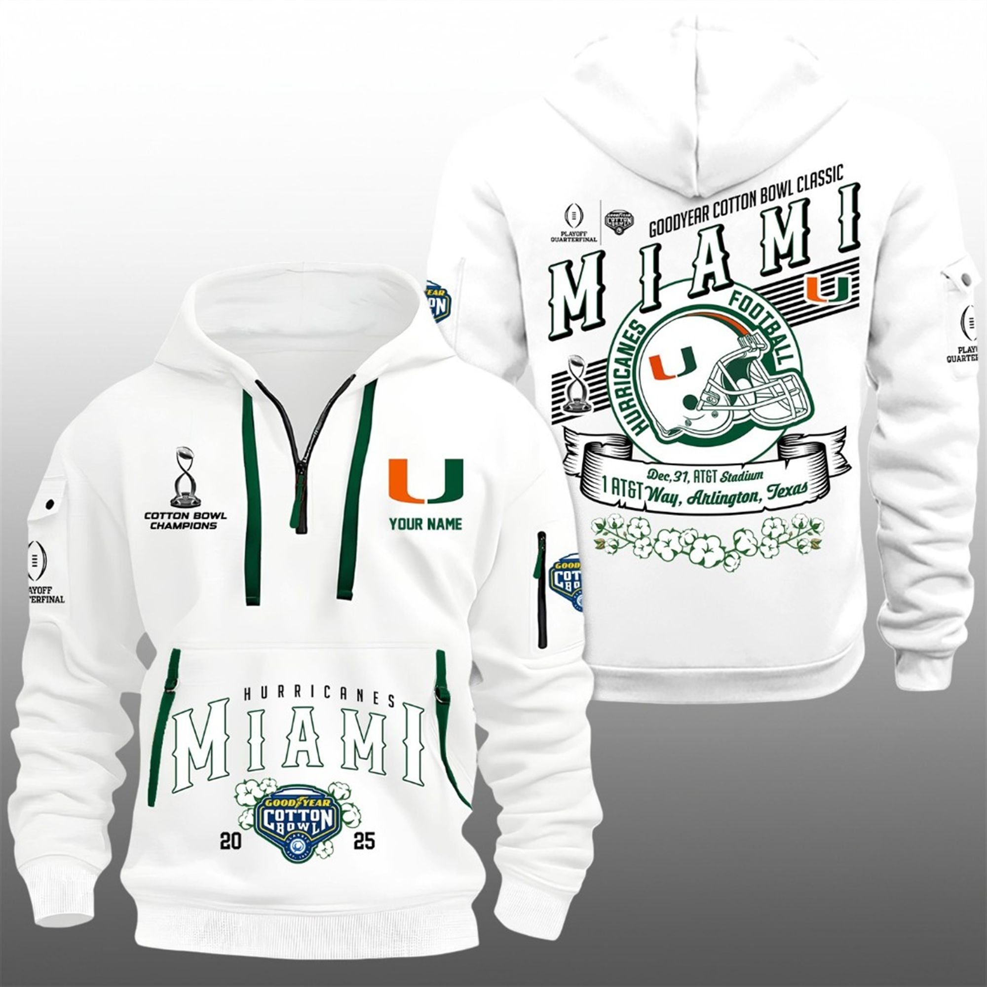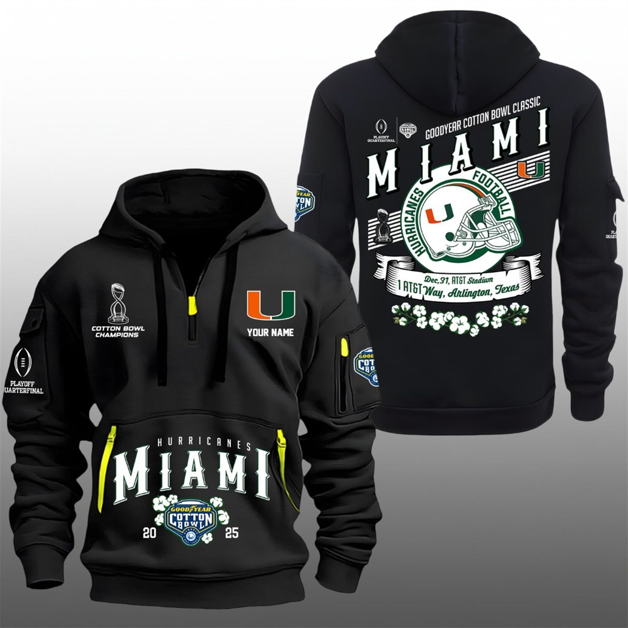 2026 Miami Hurricanes Goodyear Cotton Bowl Classic Champions Quarter Zip Hoodie – The Ultimate Playoff Victory Gear